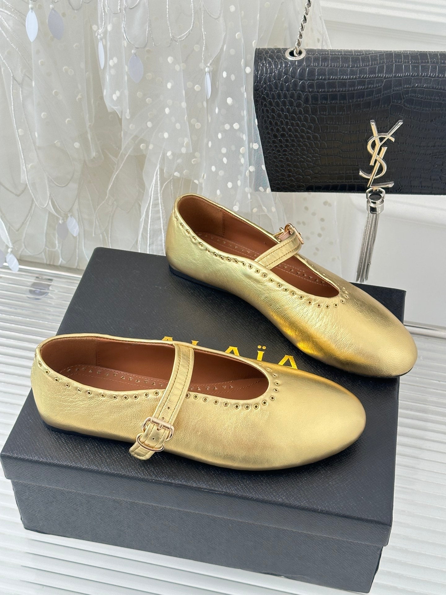 Alaia 25 Ballet Flats Gold Calfskin 293241