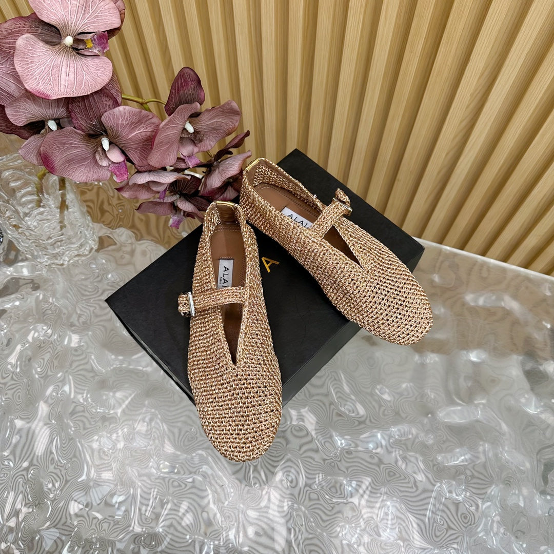 Alaia Ballet Flats In Dark Beige Stretch Woven Sedge 102280