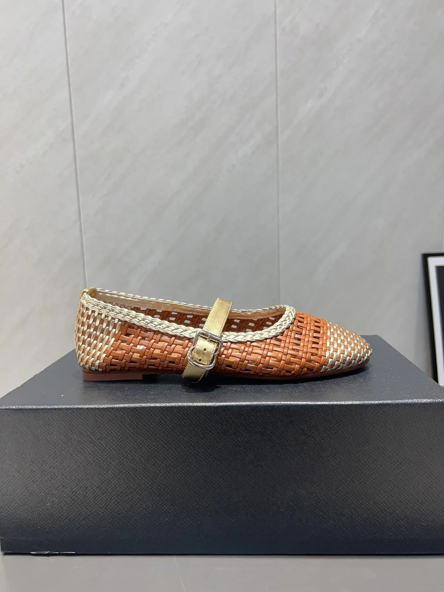 Alaia Mary Jane Flats Woven Pattern 25s In Brown Calfskin