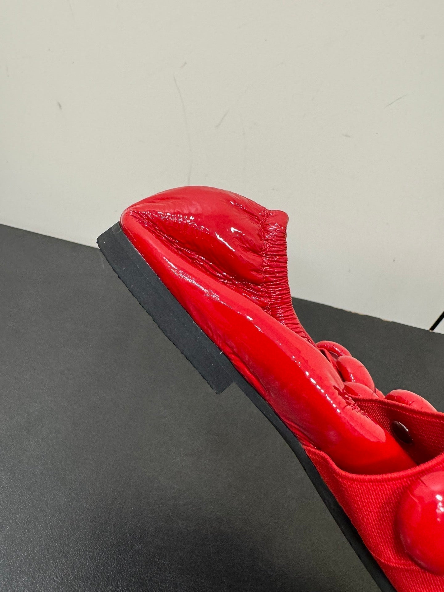 ALAIA SPHERE BALLET FLATS IN CHERRY RED LAMBSKIN
