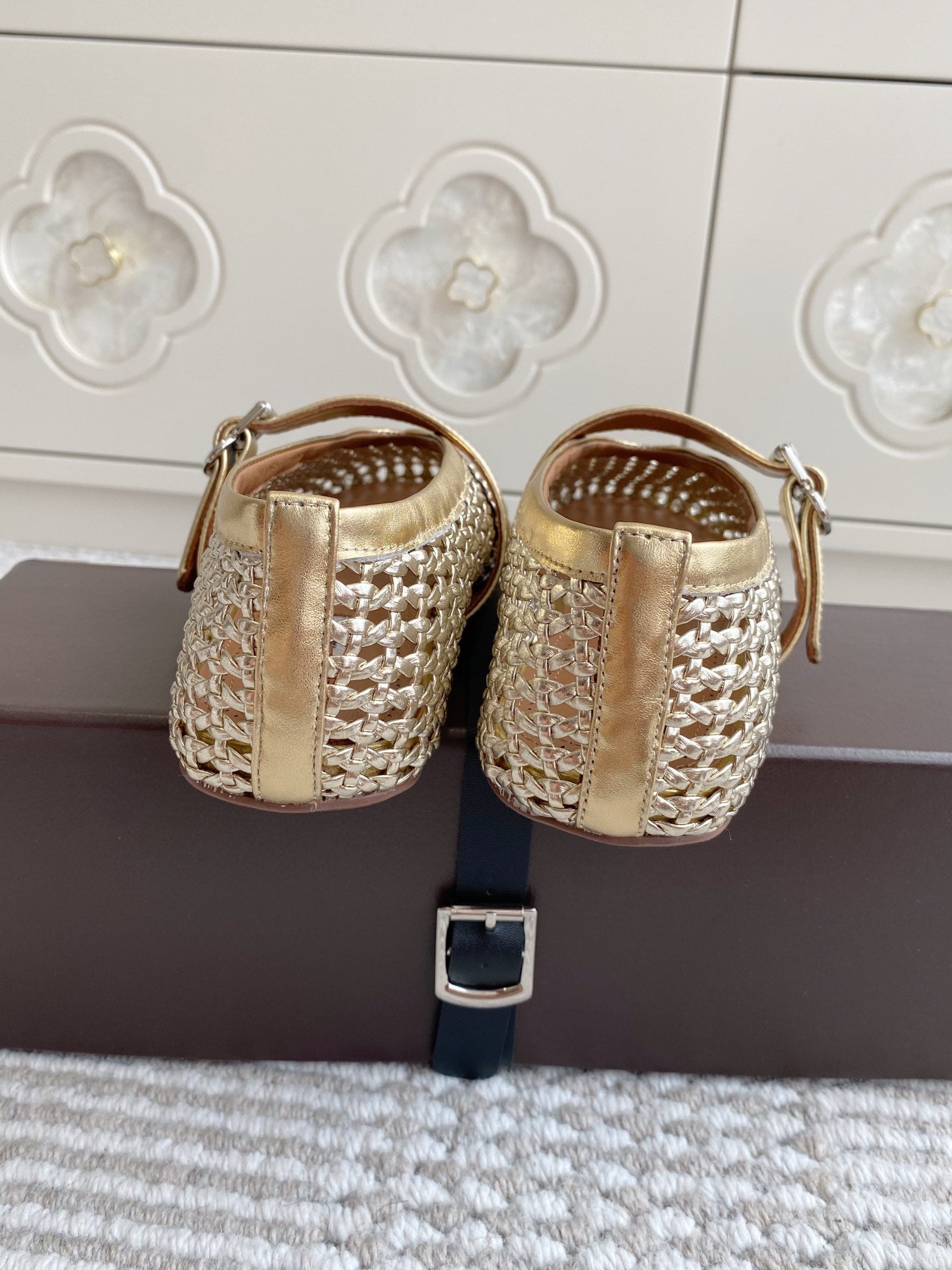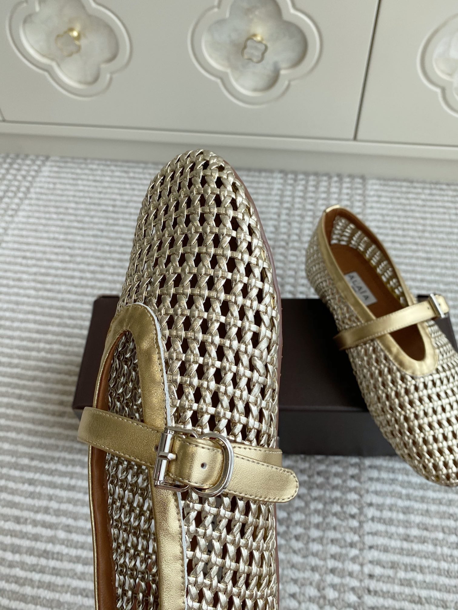 Alaia Women's Ballet Flat Gold Lambskin 291053