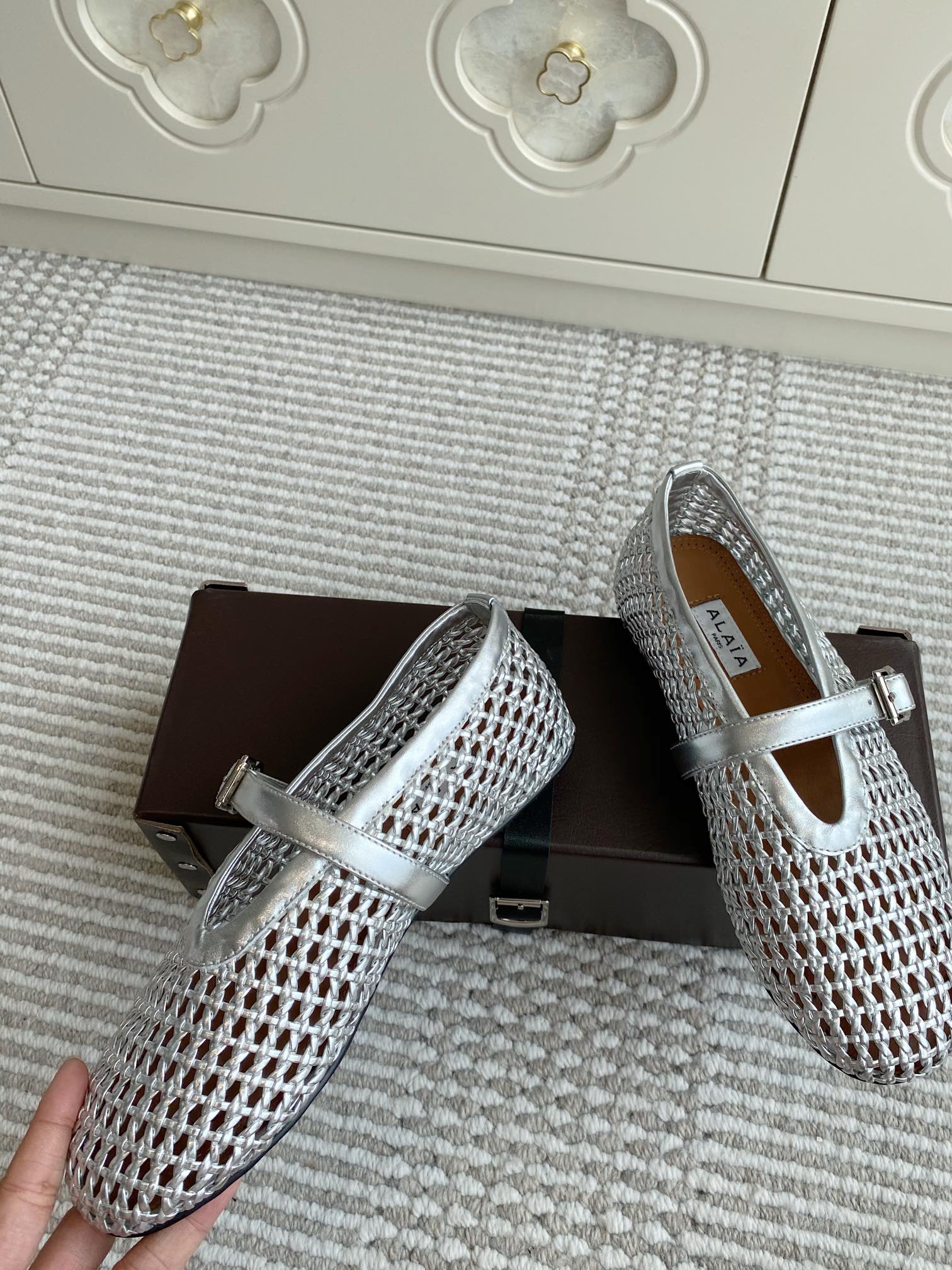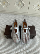 Alaia Women's Ballet Flat Silver Lambskin 291051