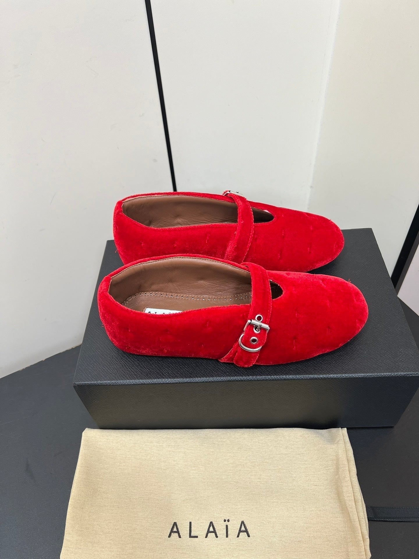 Alaila Ballet Flats In Red Velvet 975743
