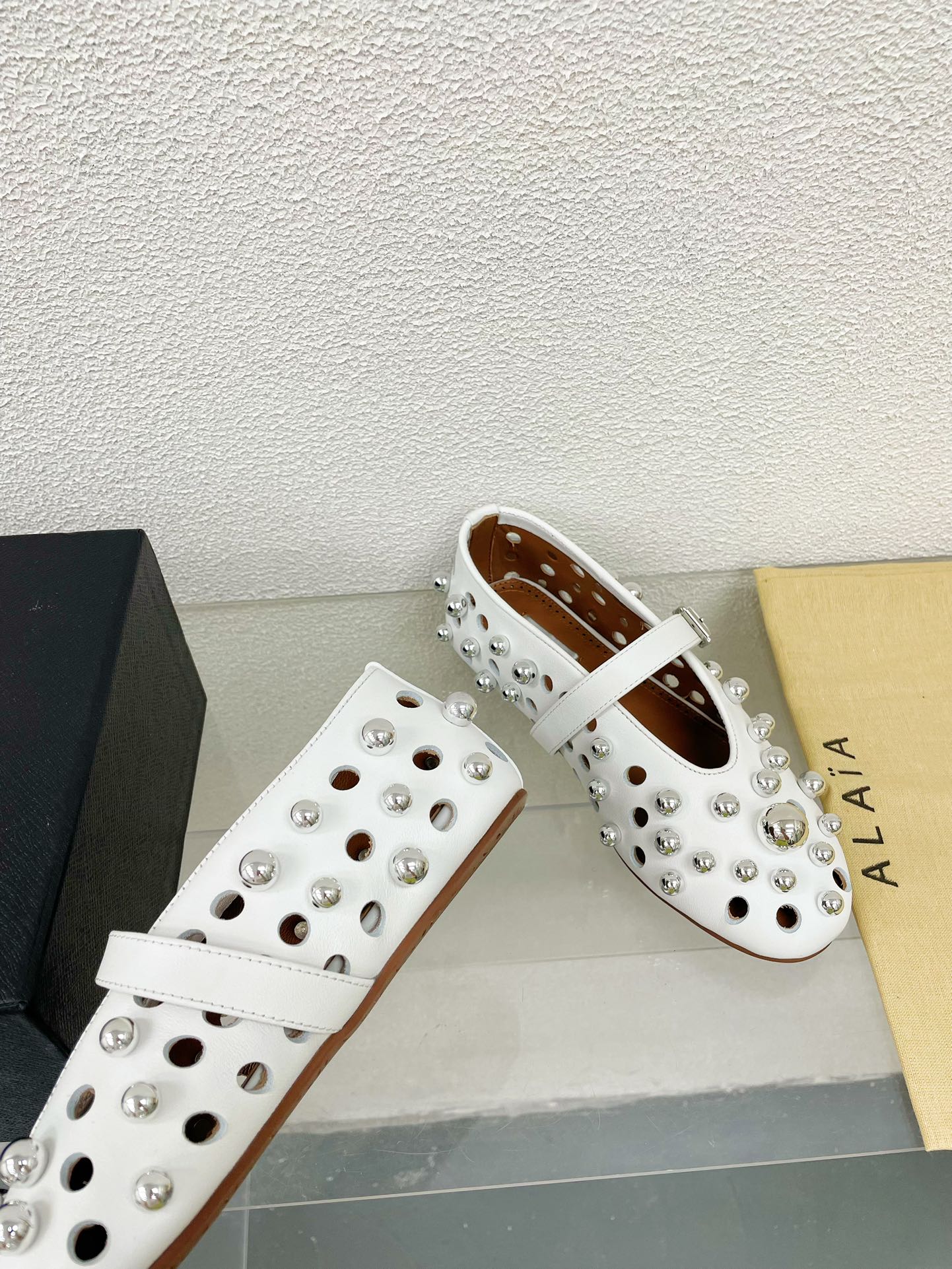 Alaila Ballet Flats In White Lambskin Beaded 897248