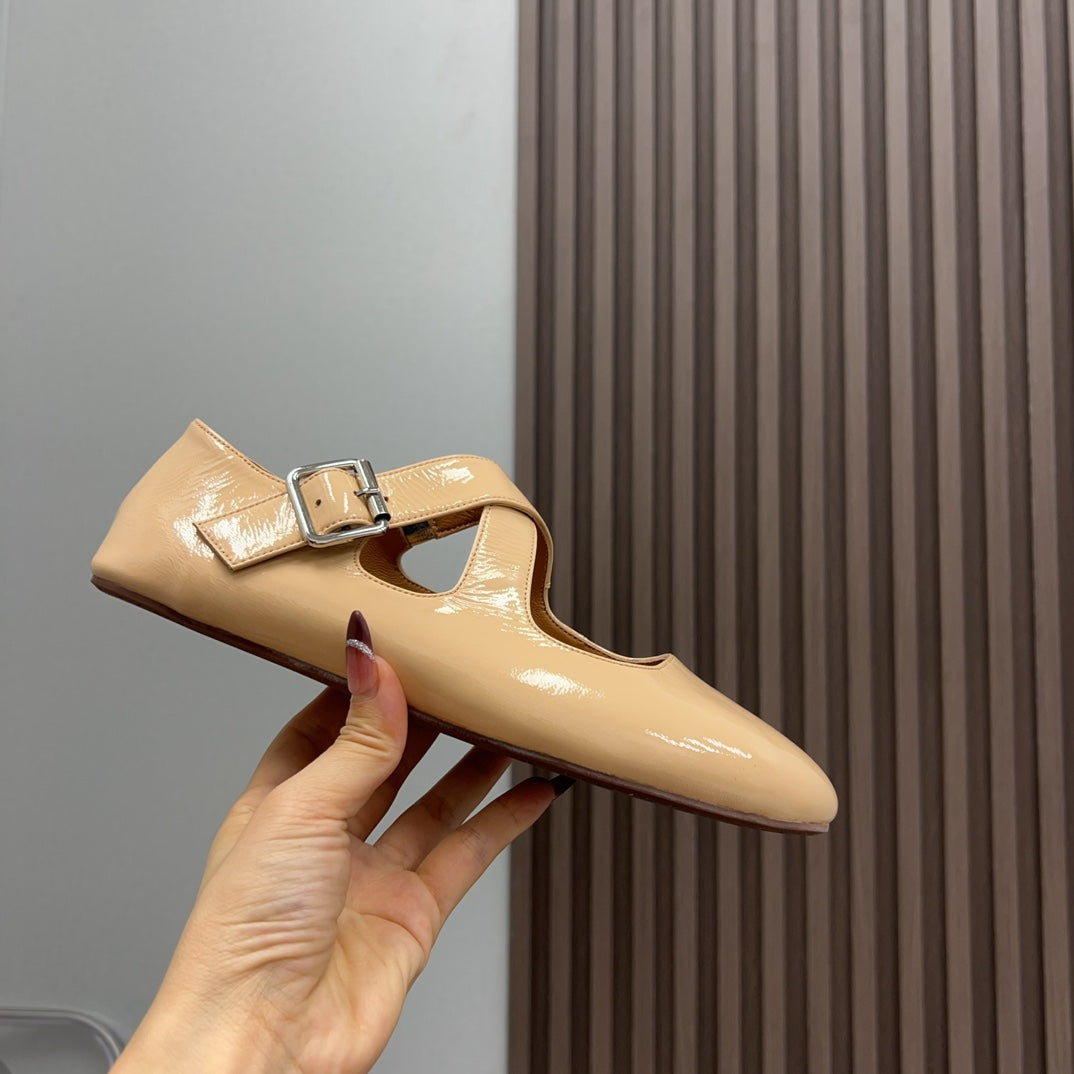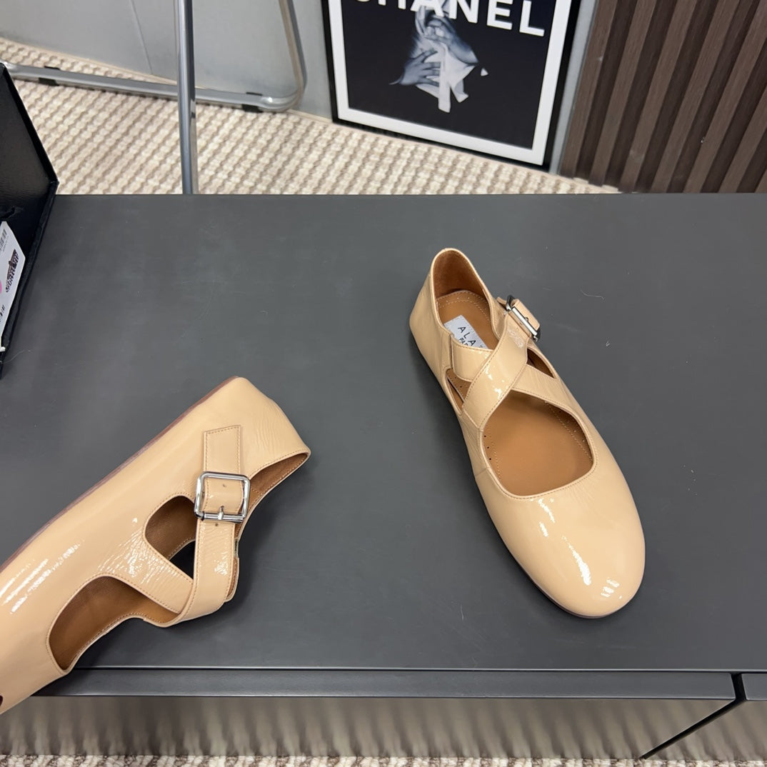 Alaila Criss Cross Ballet Flats In Beige Glossy Calfskin 996031
