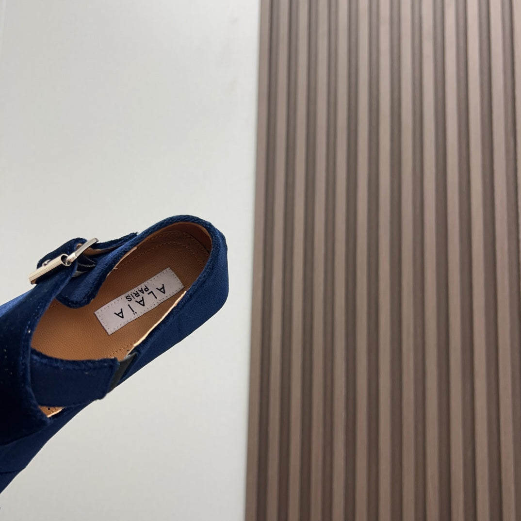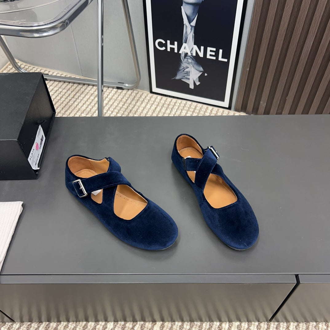 Alaila Criss Cross Ballet Flats In Deep Blue Velvet 996043