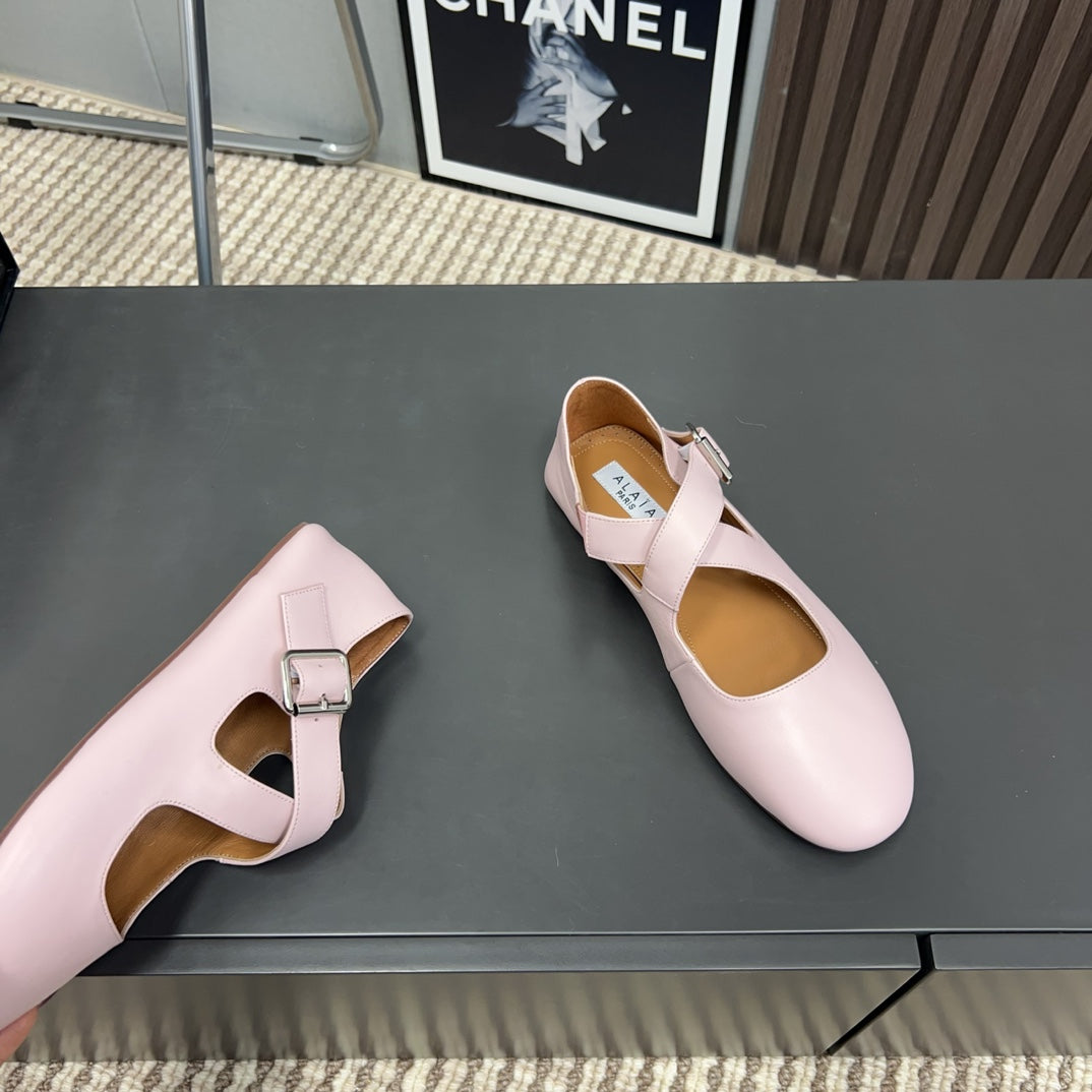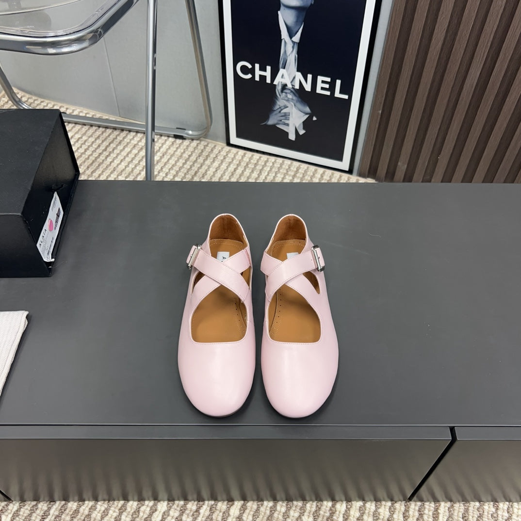 Alaila Criss Cross Ballet Flats In Light Pink Lambskin 996035