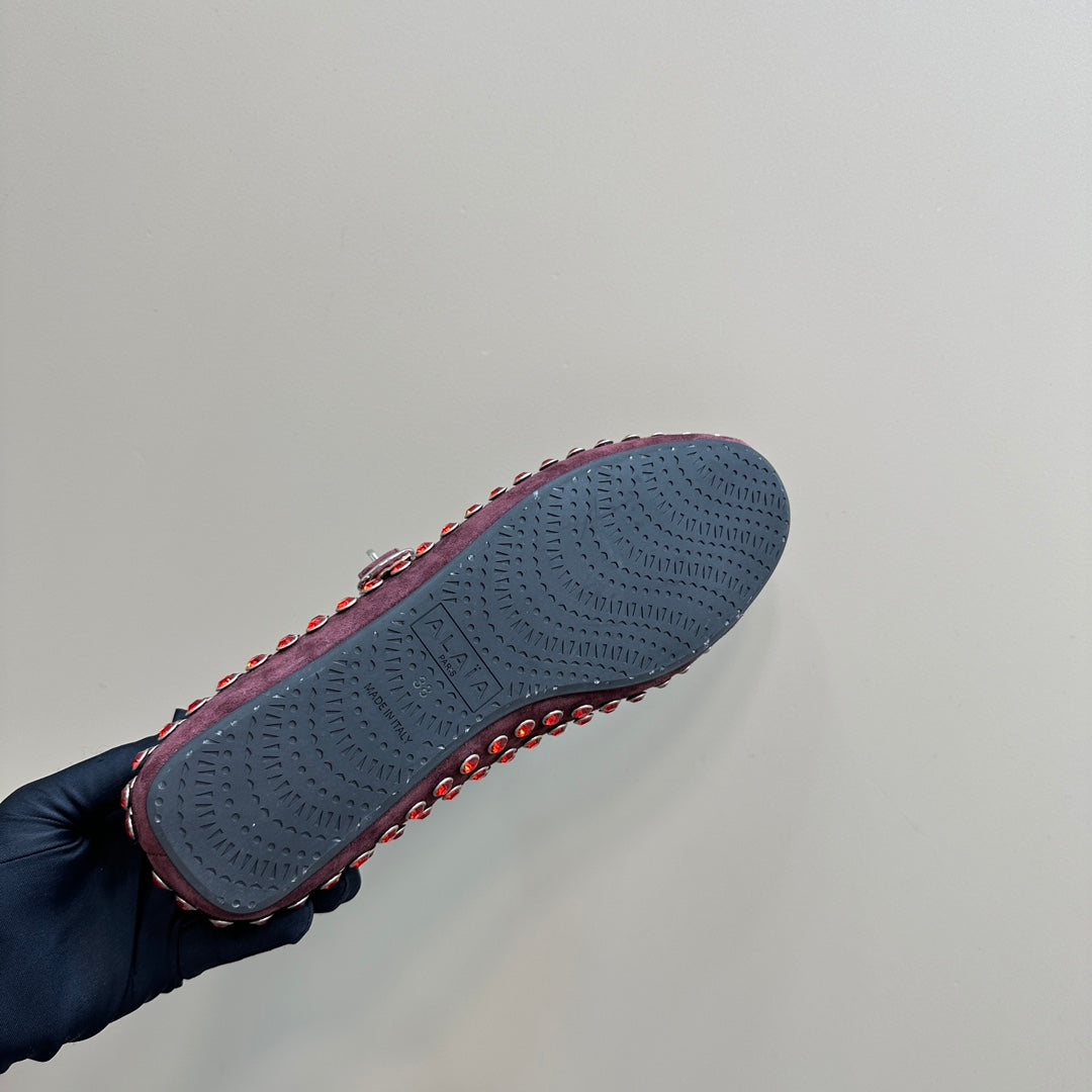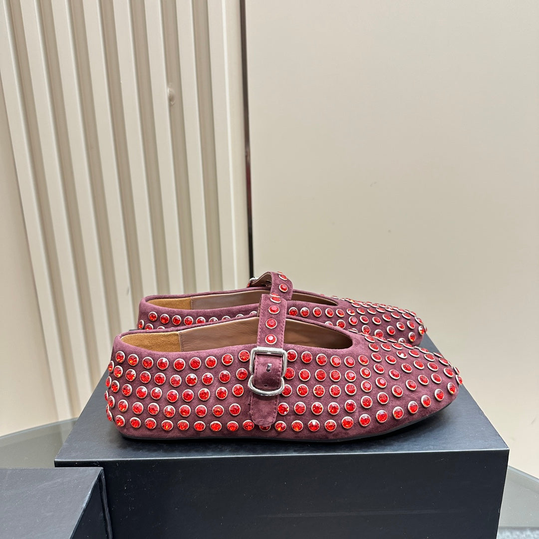 Ballet Flat Fishnet Burgundy Strass Suede