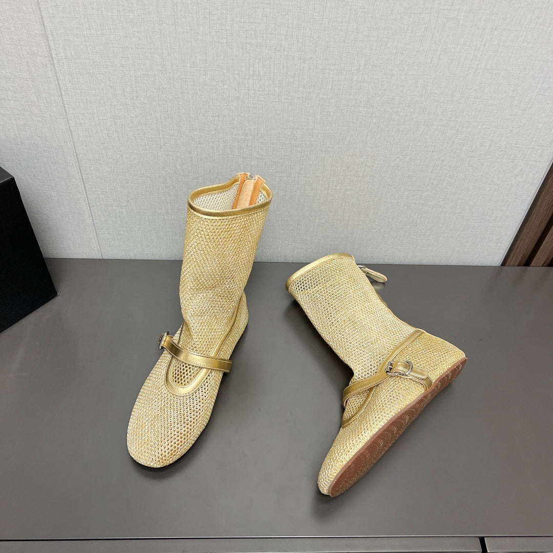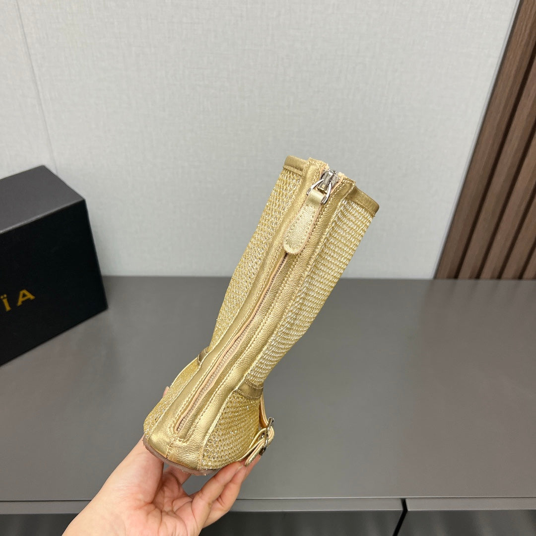ALAIA SHORT BOOTS IN GOLD MESH FISHNET