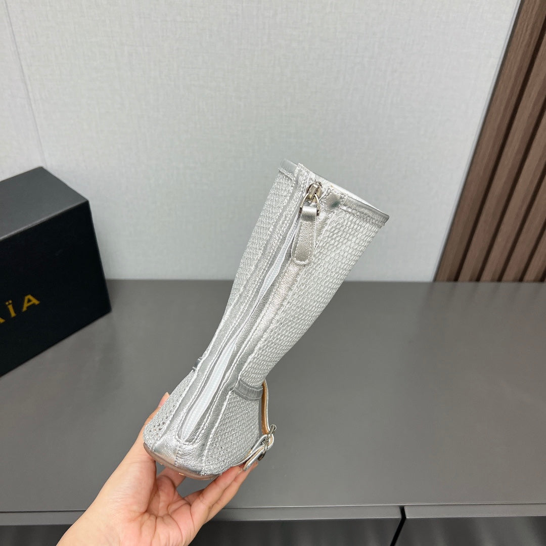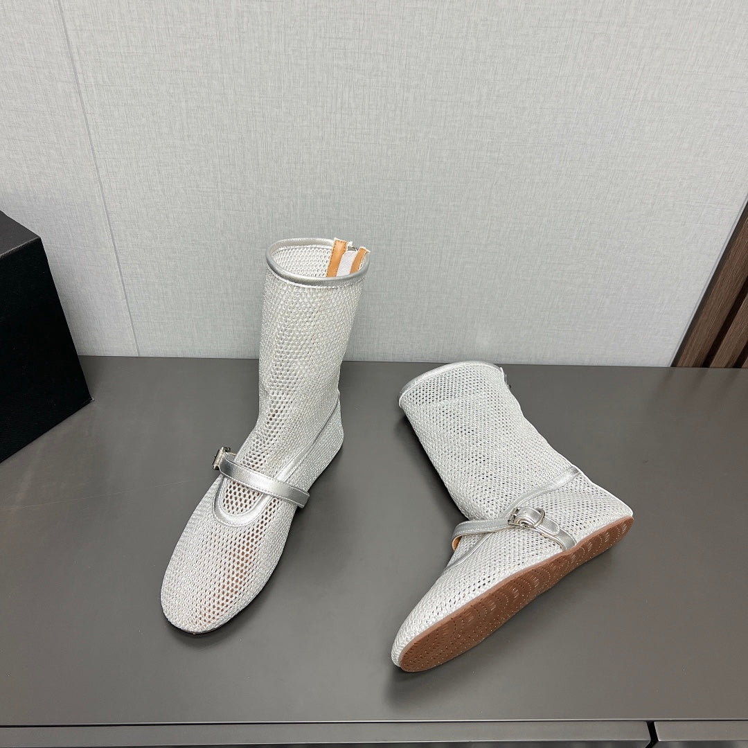 ALAIA SHORT BOOTS IN SILVER MESH FISHNET