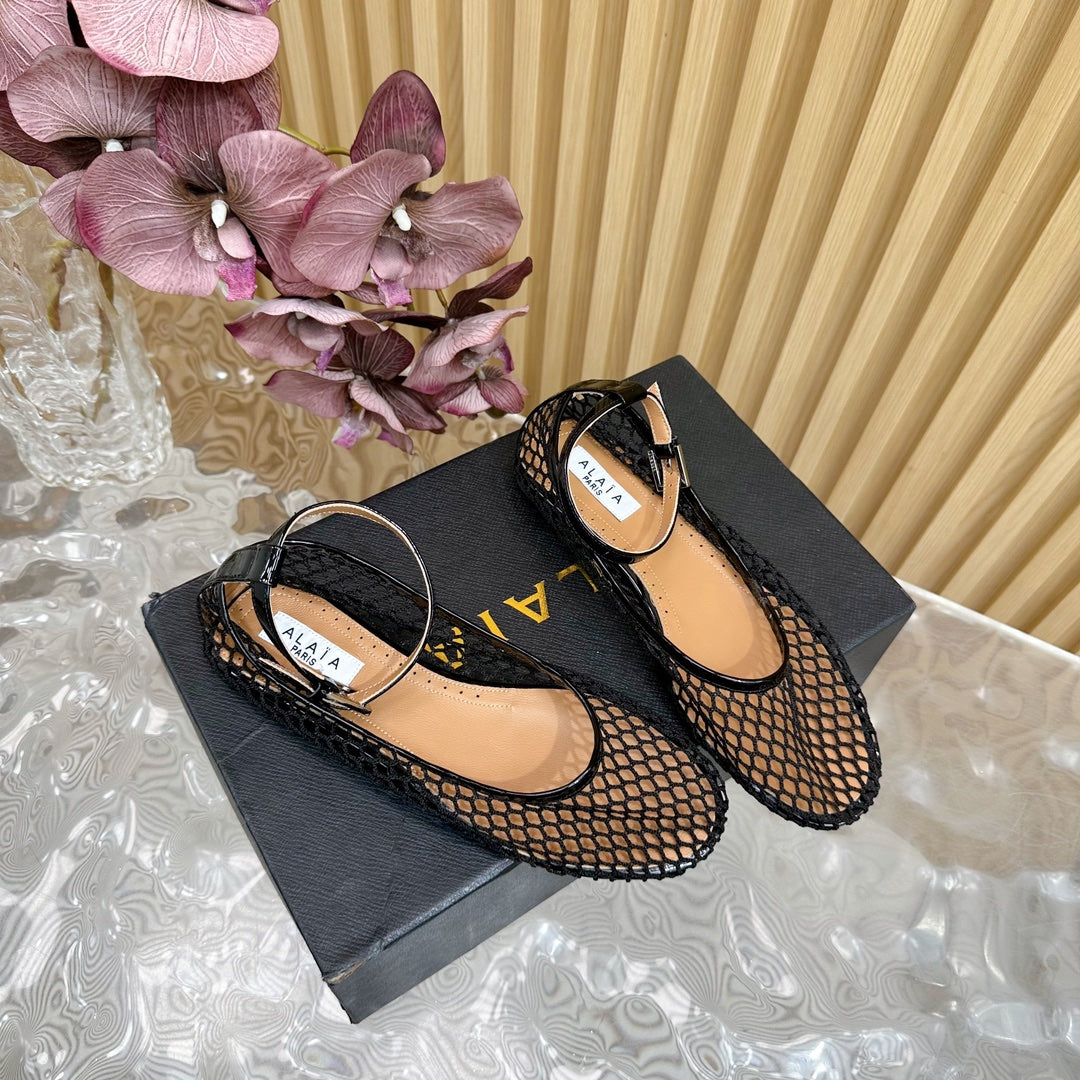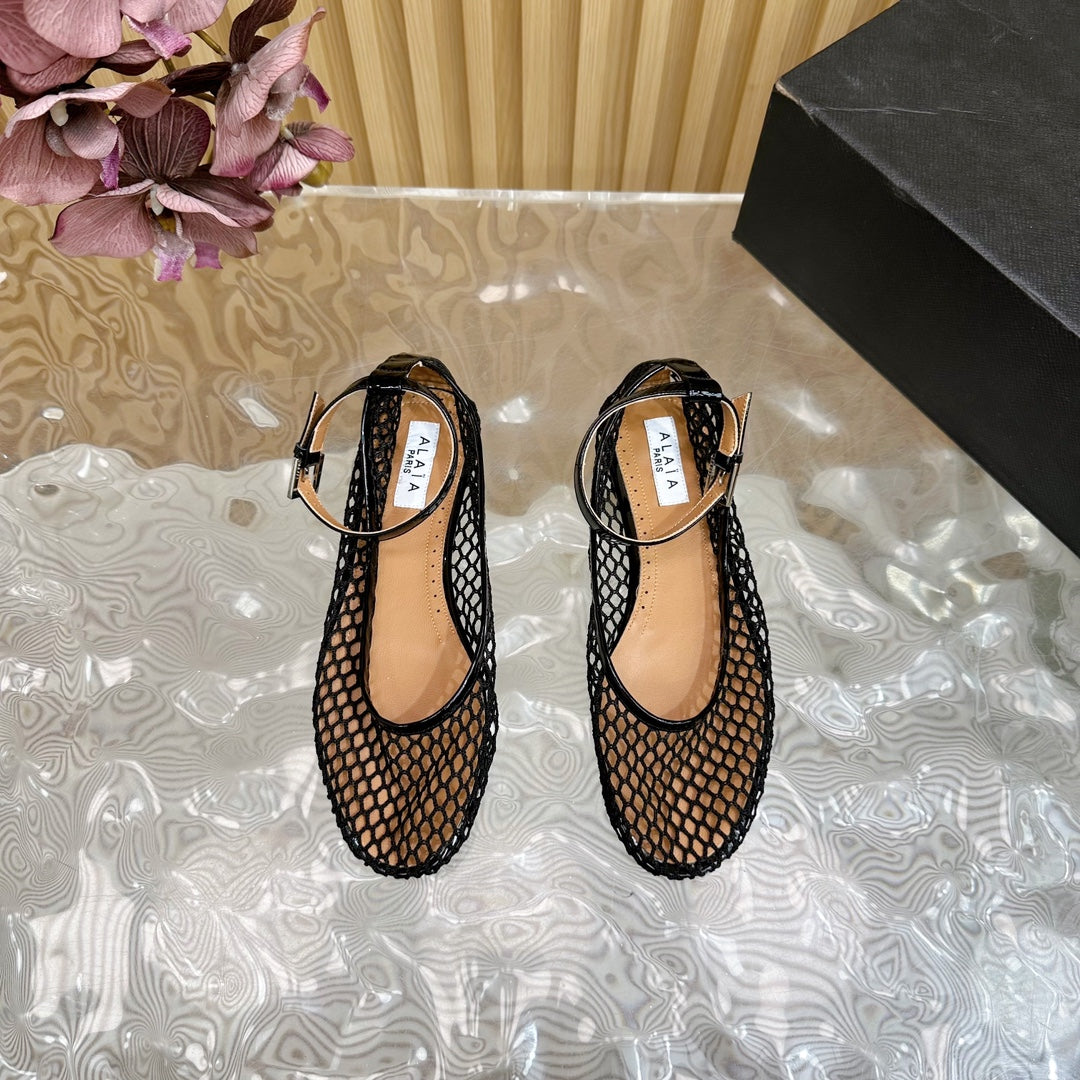 Alaia 25 Laminated Fishnet Ballet Flats Black Lambskin 576444
