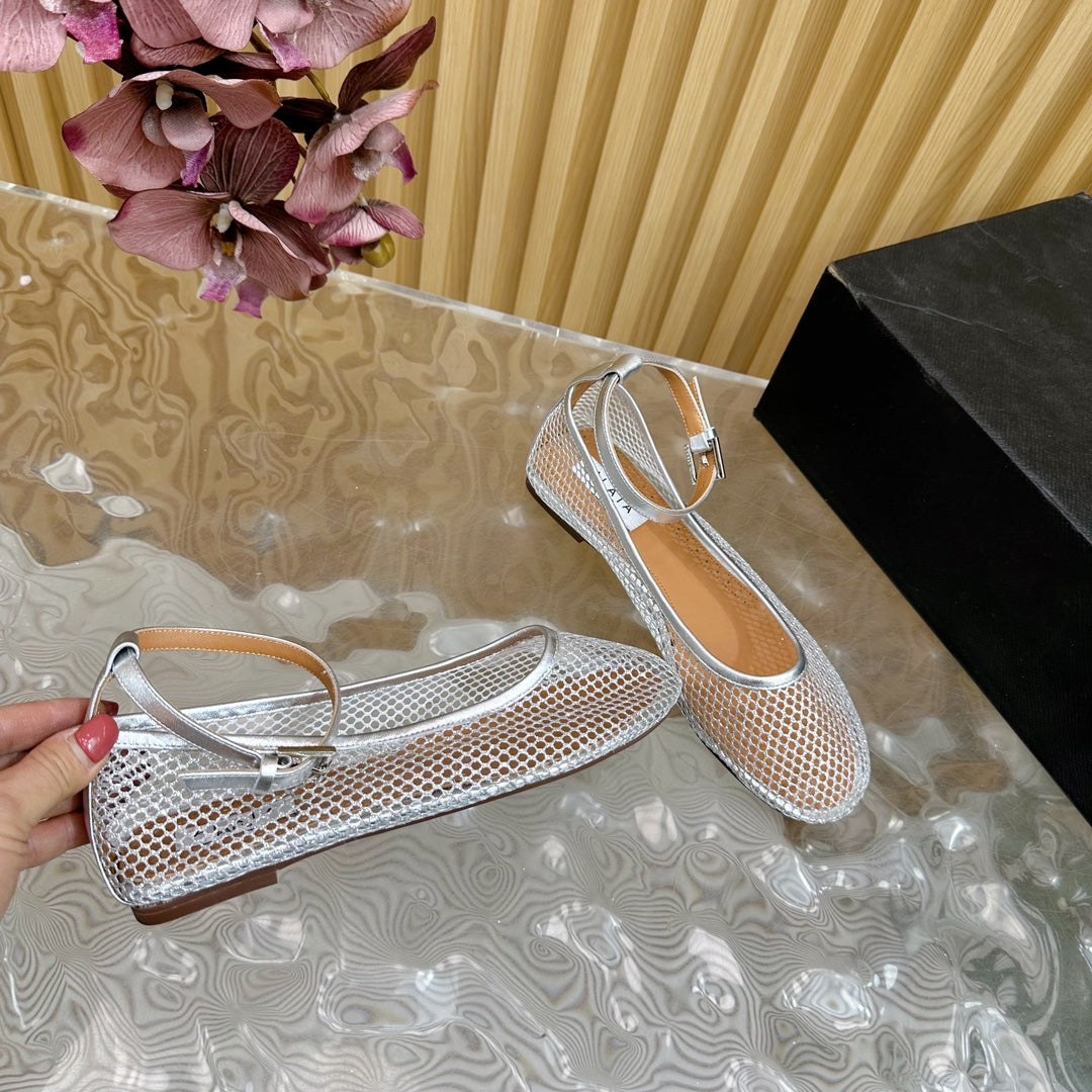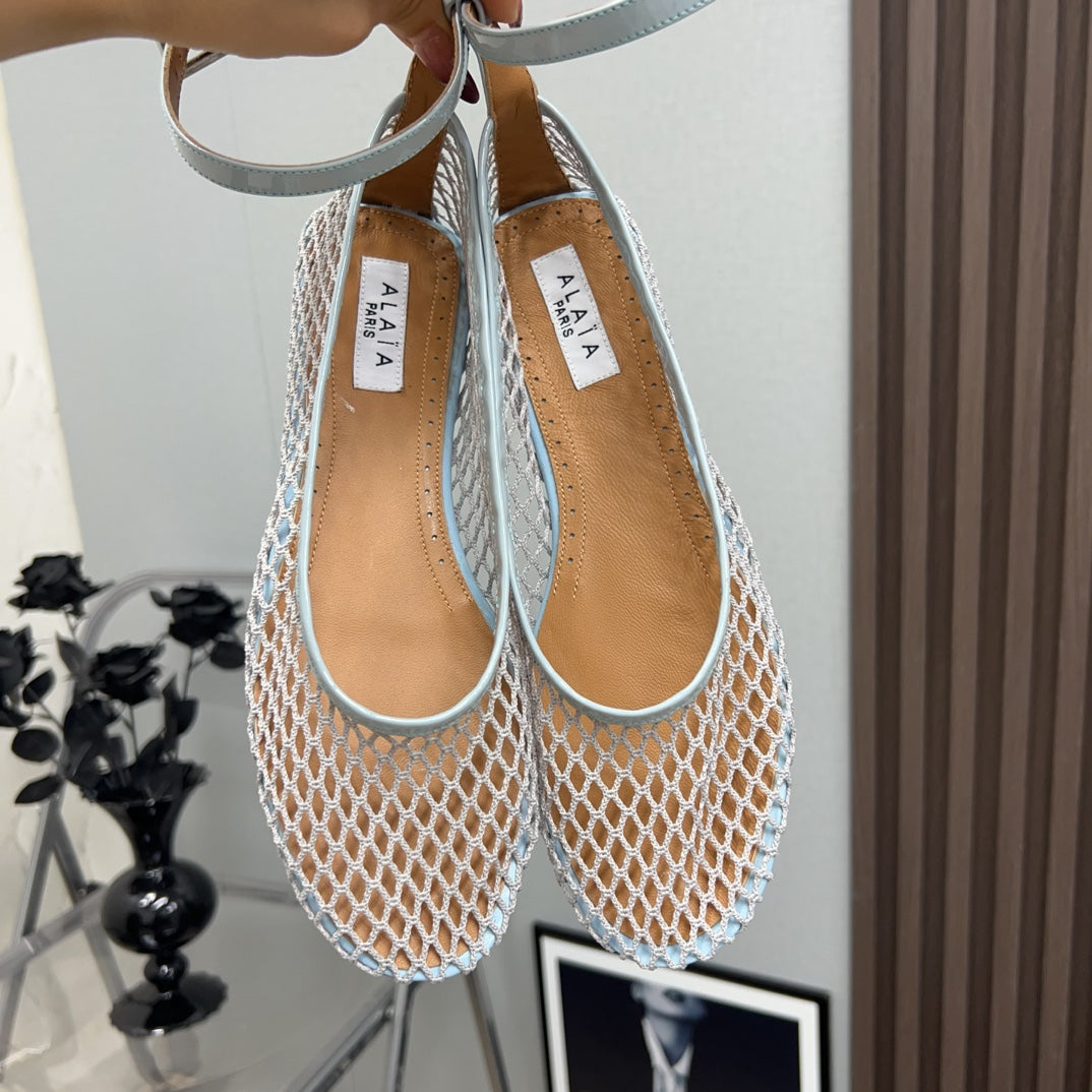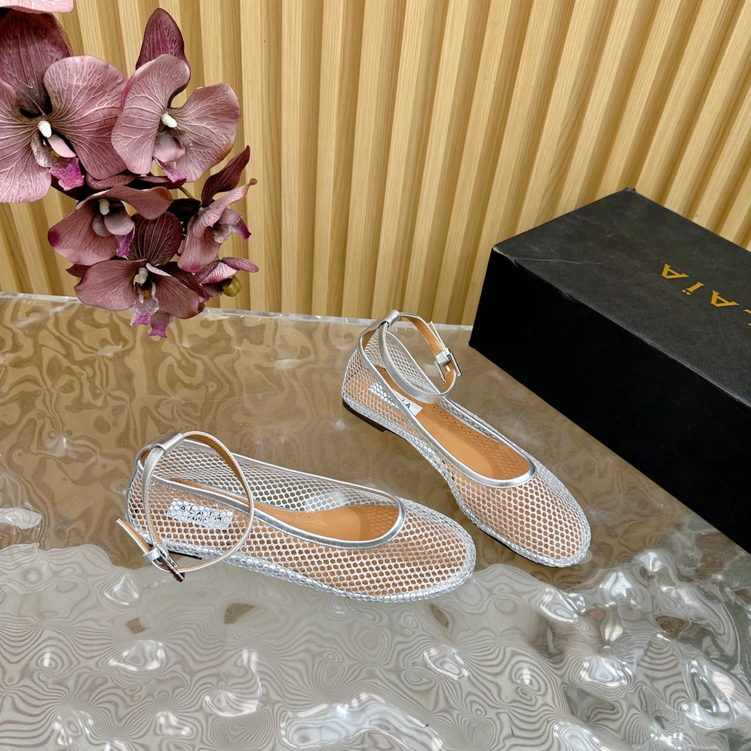 Alaia 25 Laminated Fishnet Ballet Flats Silver Lambskin 677174