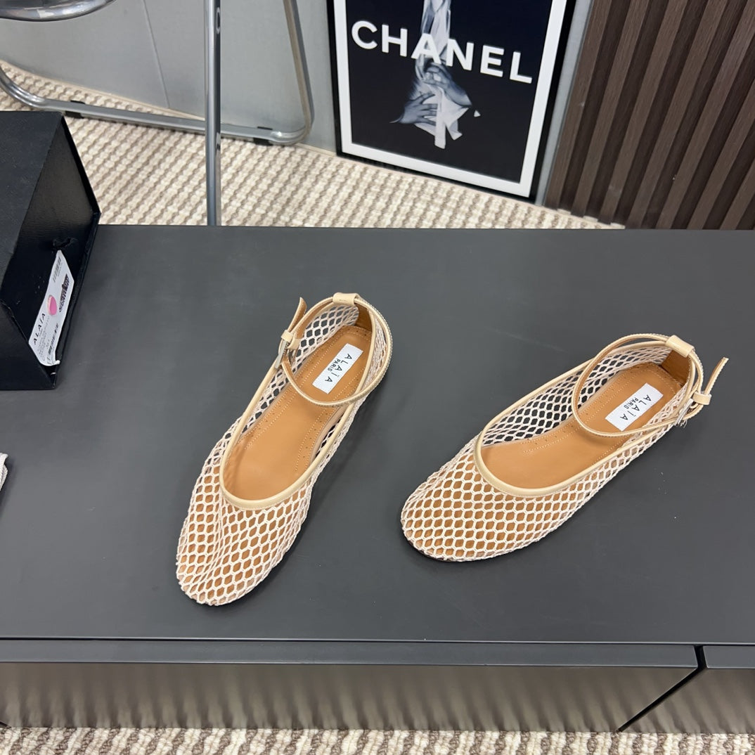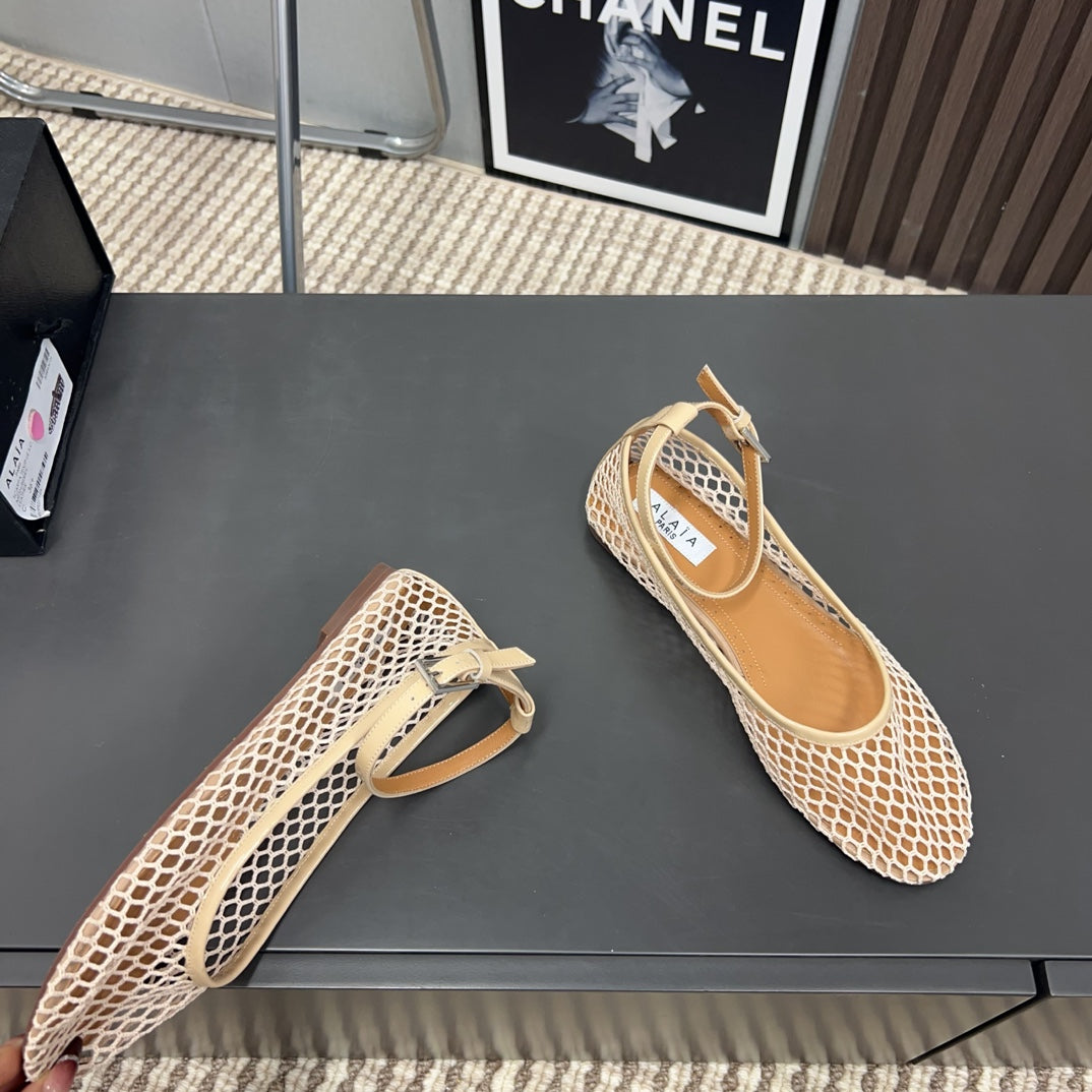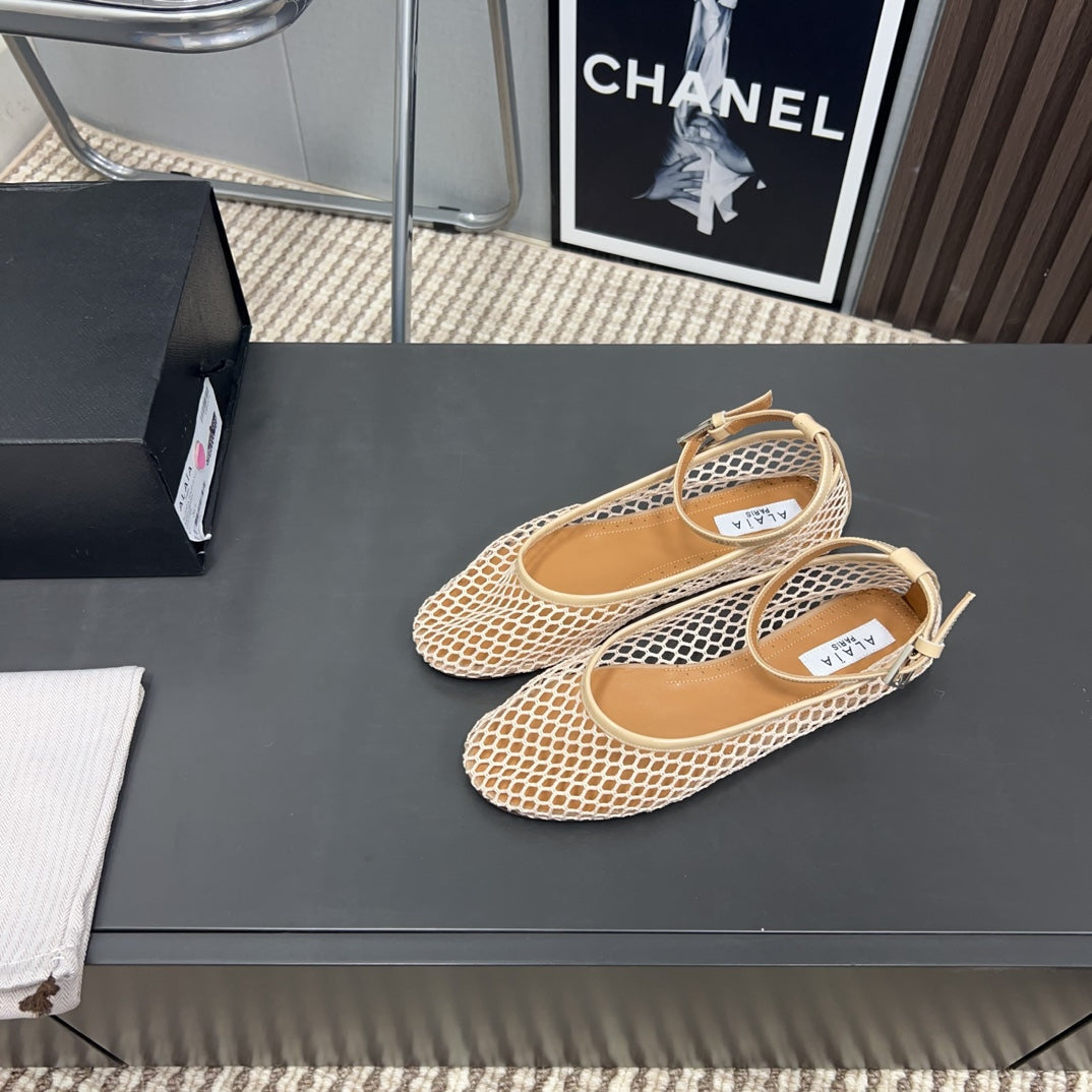 Alaia 25 Laminated Fishnet Ballet Flats Fawn Lambskin 621833