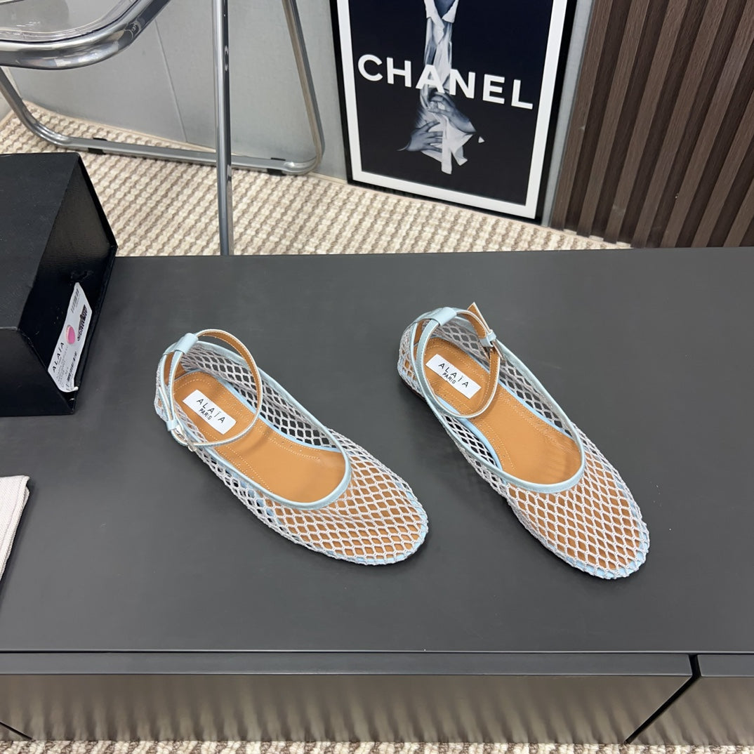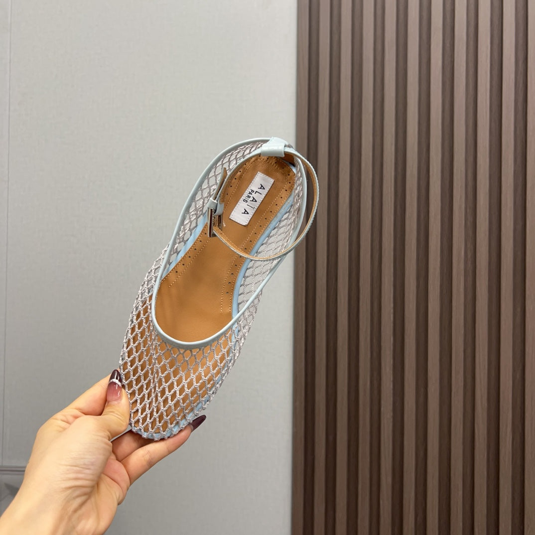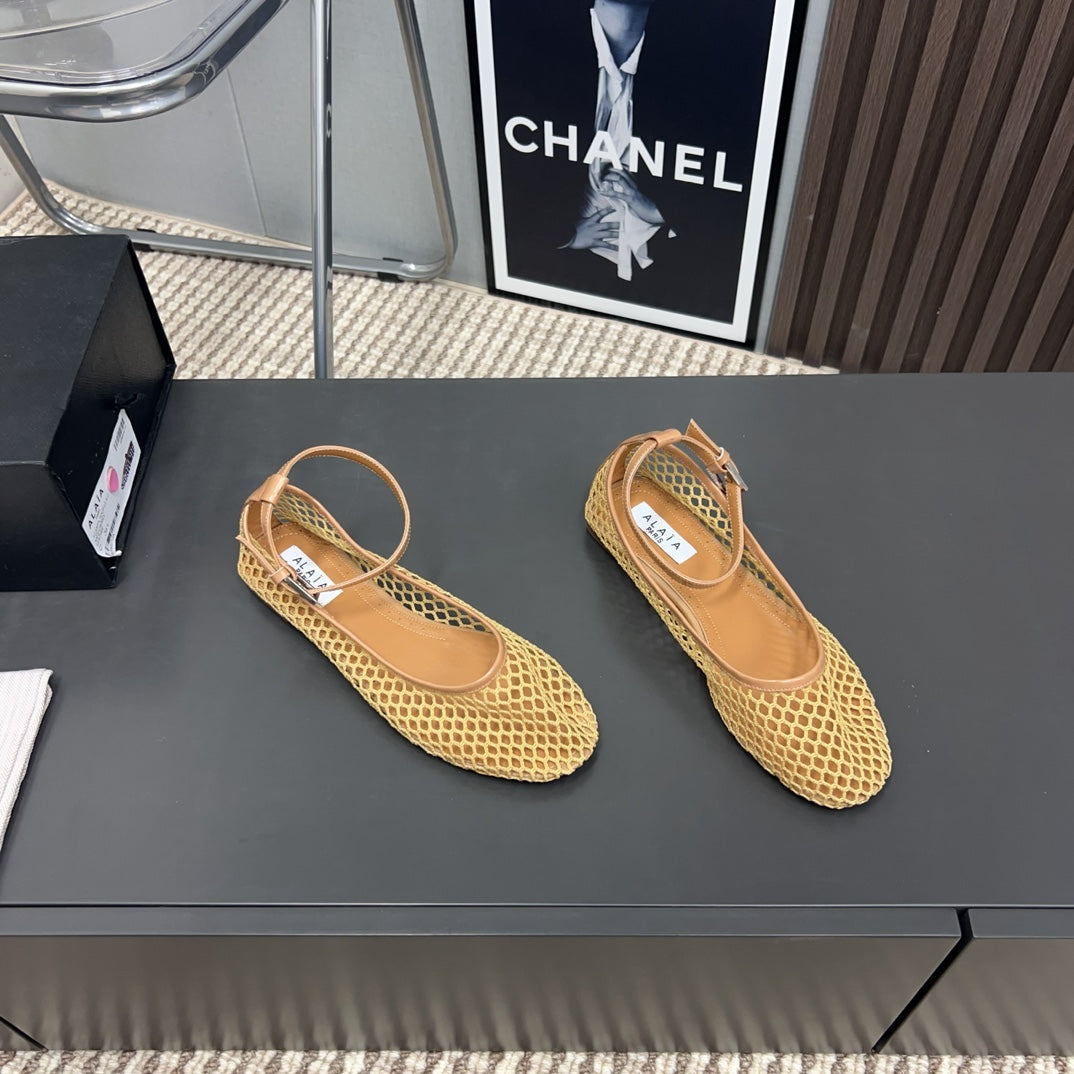Alaia 25 Laminated Fishnet Ballet Flats Fawn Lambskin 621833