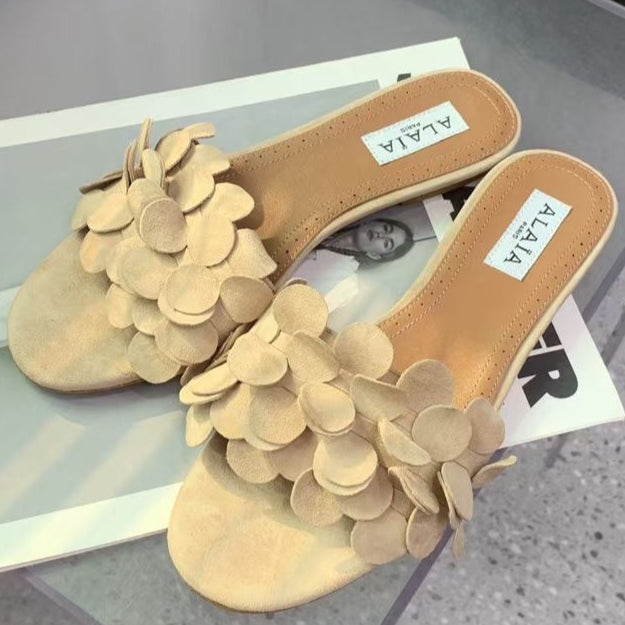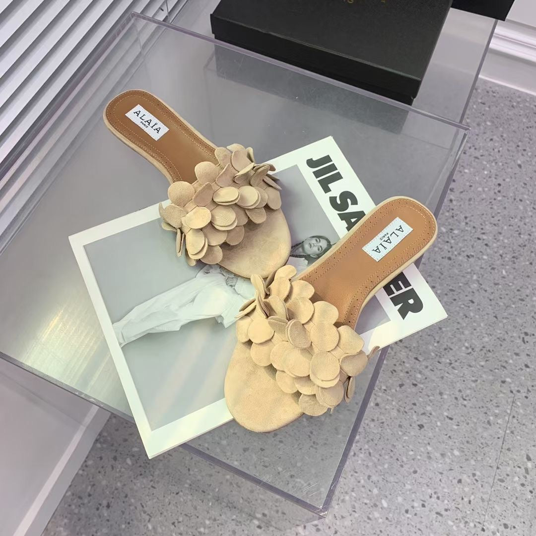 Alaia 25 Flower Slippers Pale Yellow Sheepskin 293158