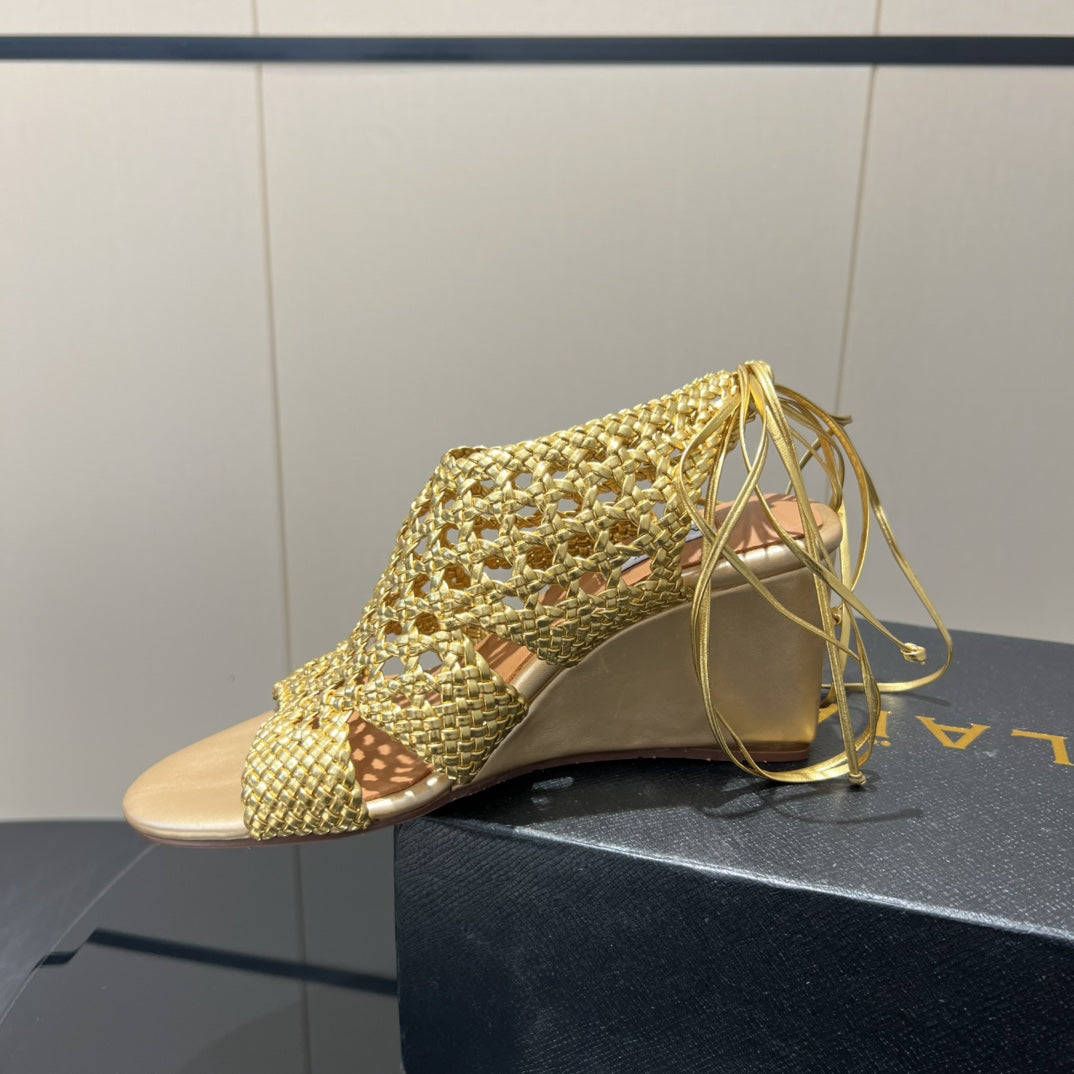 Alaia 25 Round-toe Braided Wedge Sandals 75mm Gold Metallic Woven Leather433569