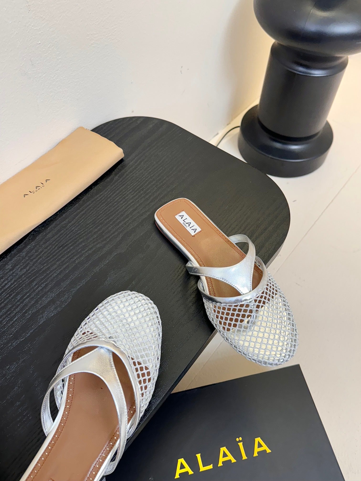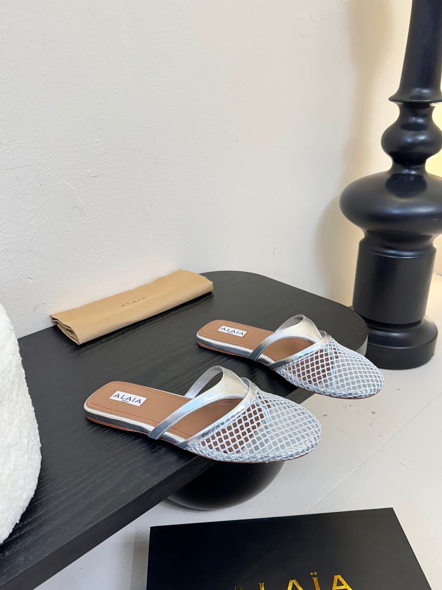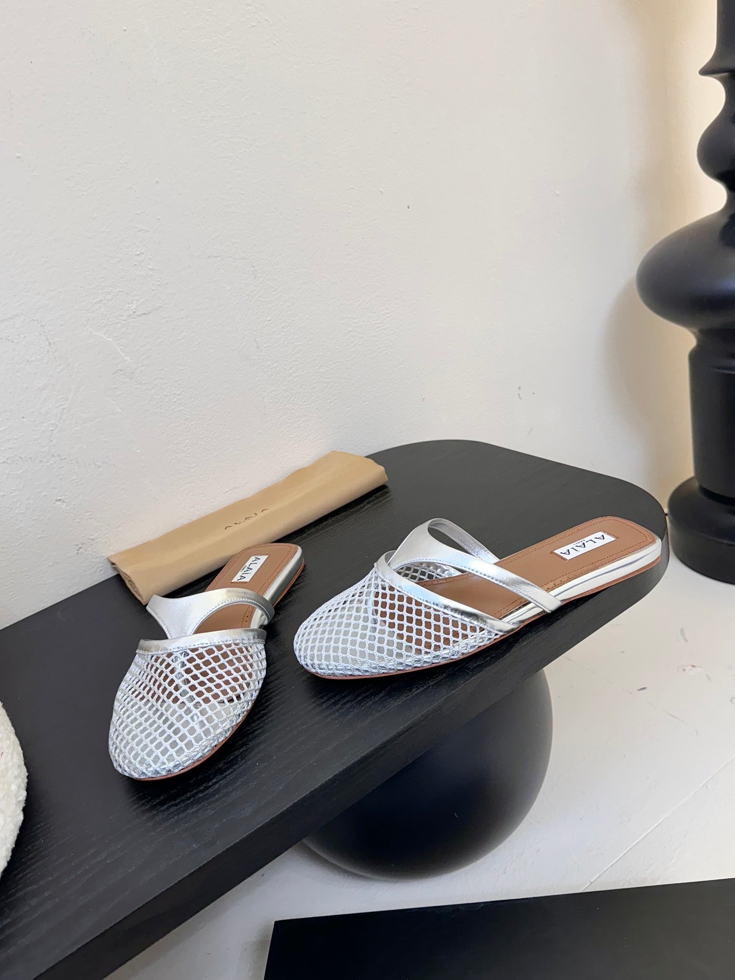 Alaia Fishnet Mule Silver Metallic Leather 235514