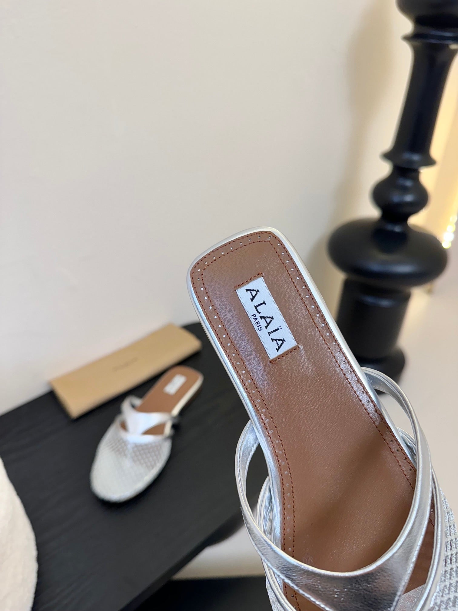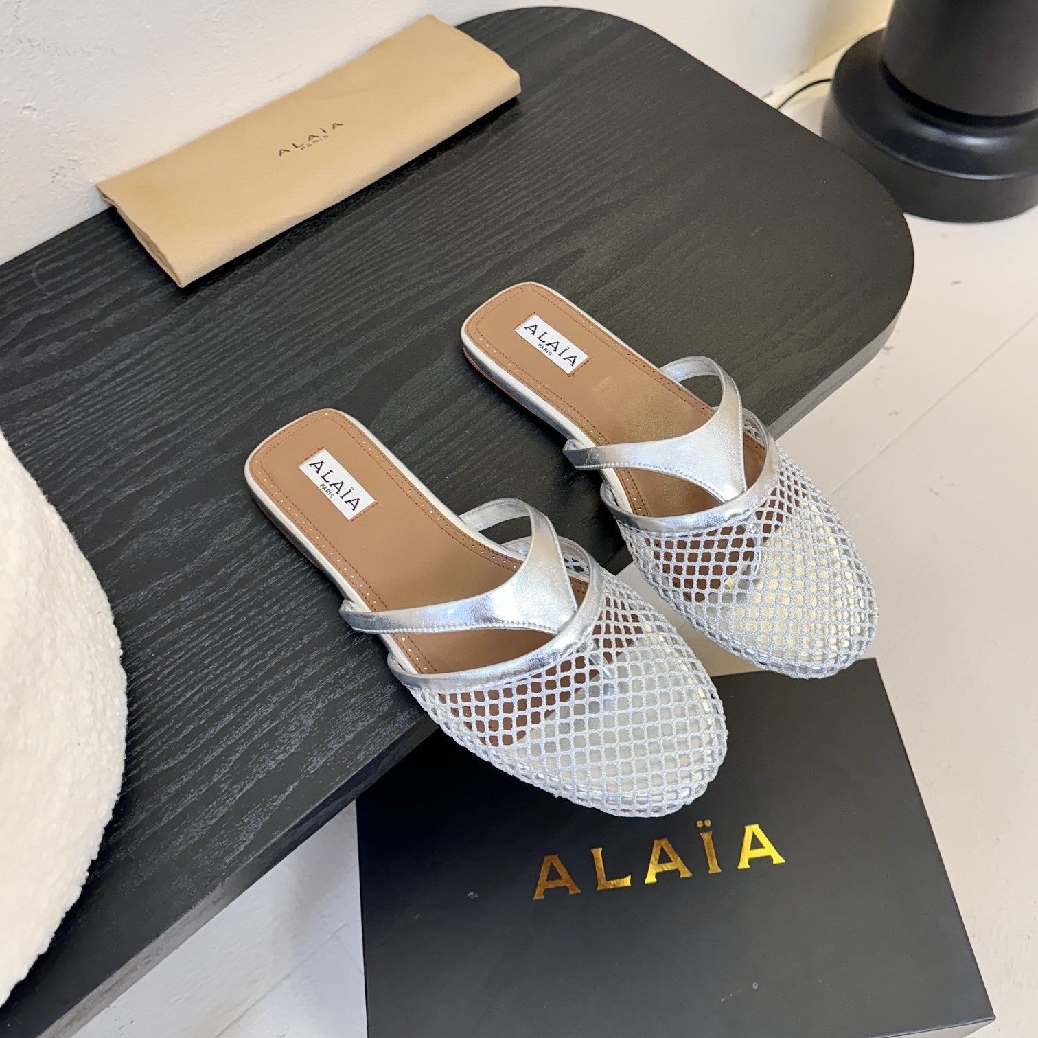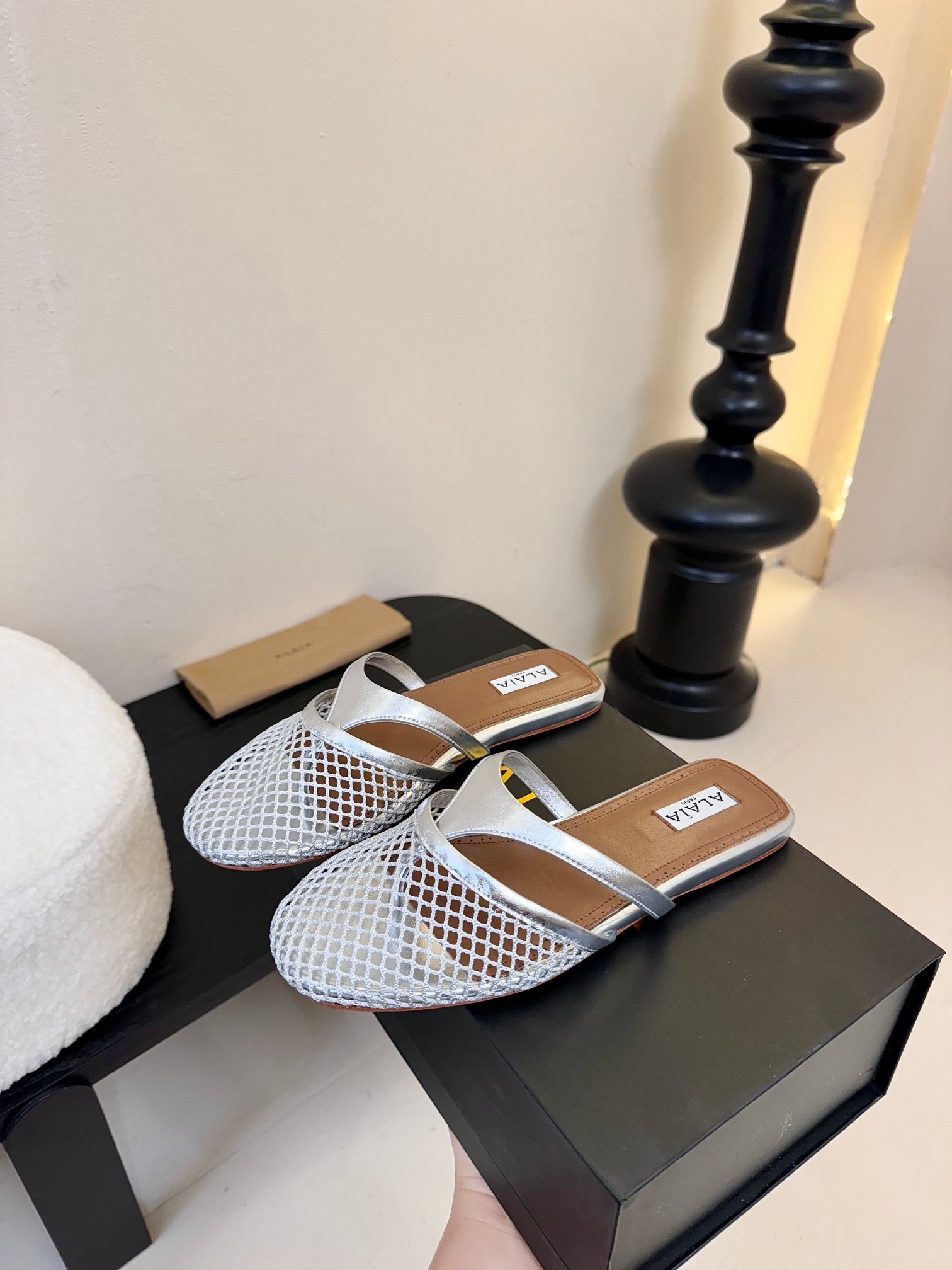 Alaia Fishnet Mule Silver Metallic Leather 235514