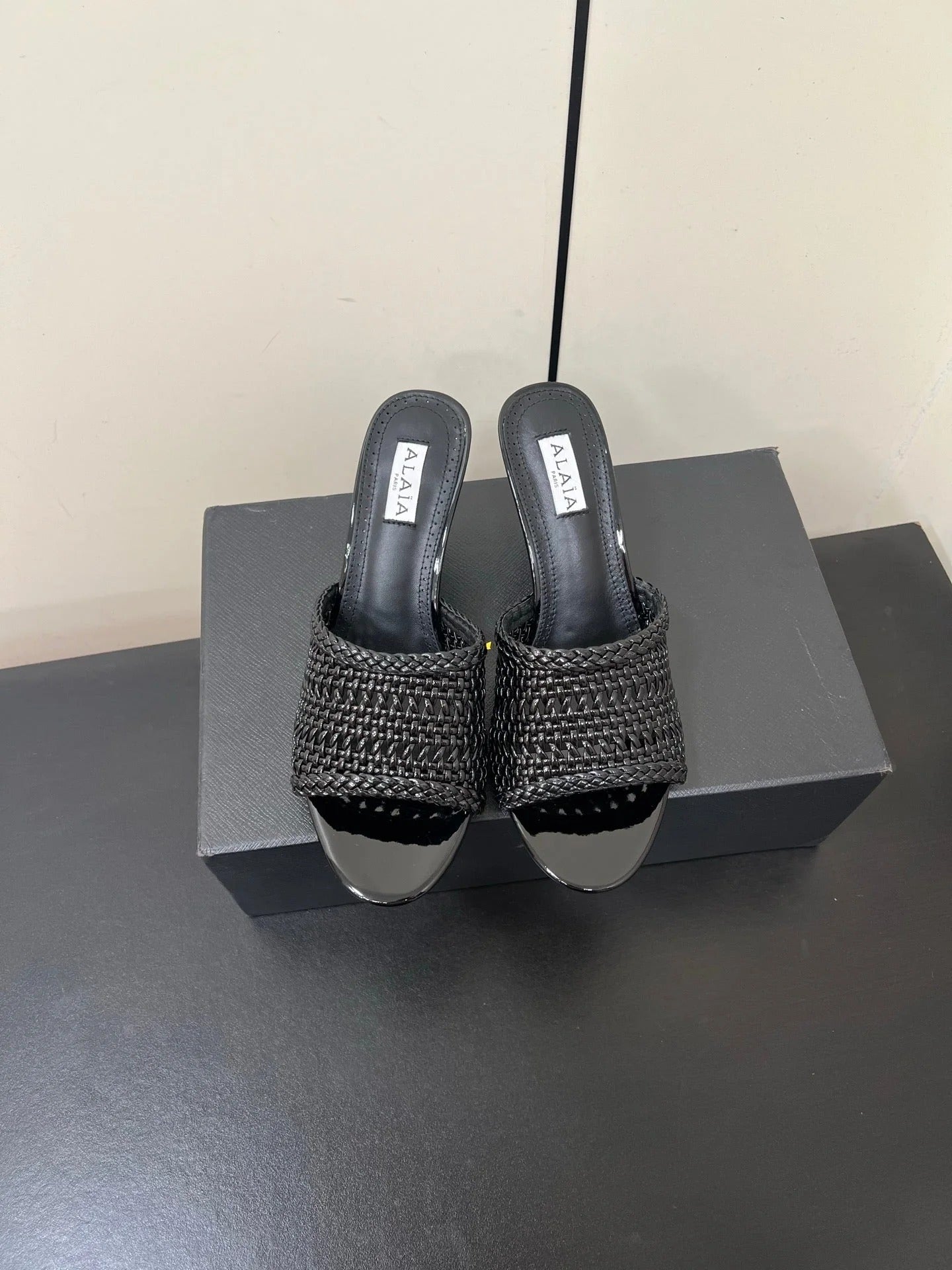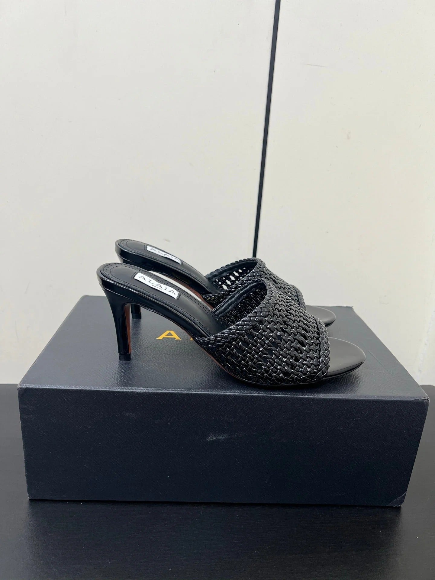 Alaia High Heel 25s 70 Mm In Black Lambskin With Woven Pattern