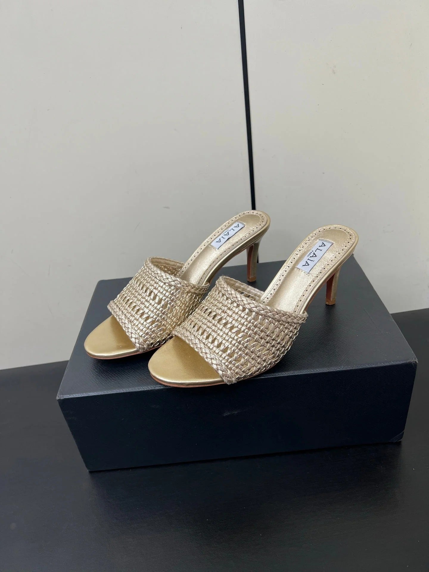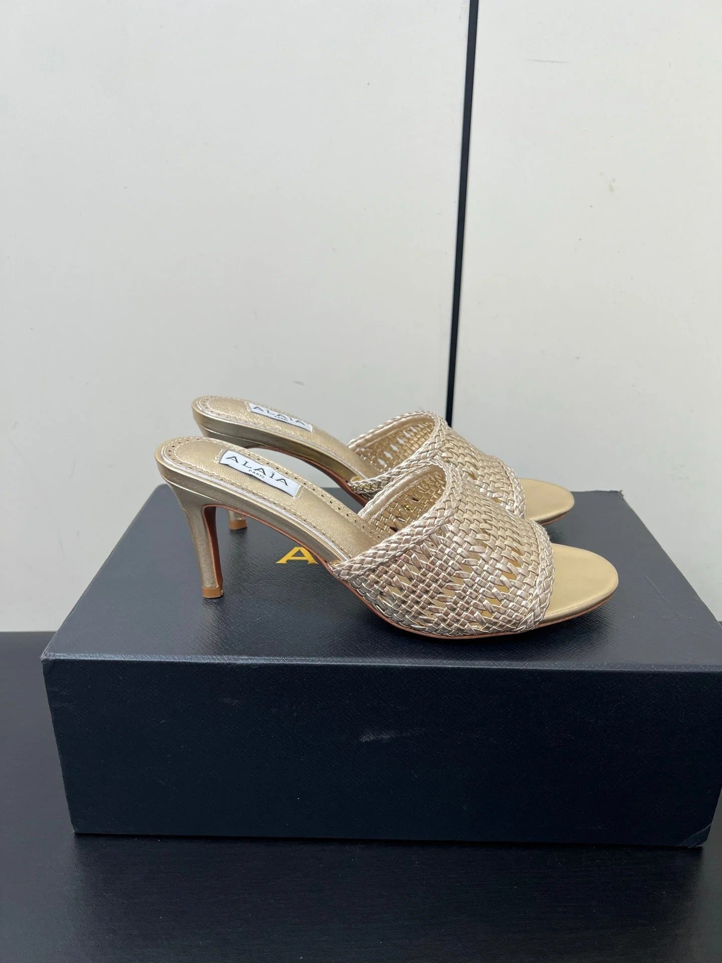Alaia High Heel 25s 70 Mm In Gold Lambskin With Woven Pattern