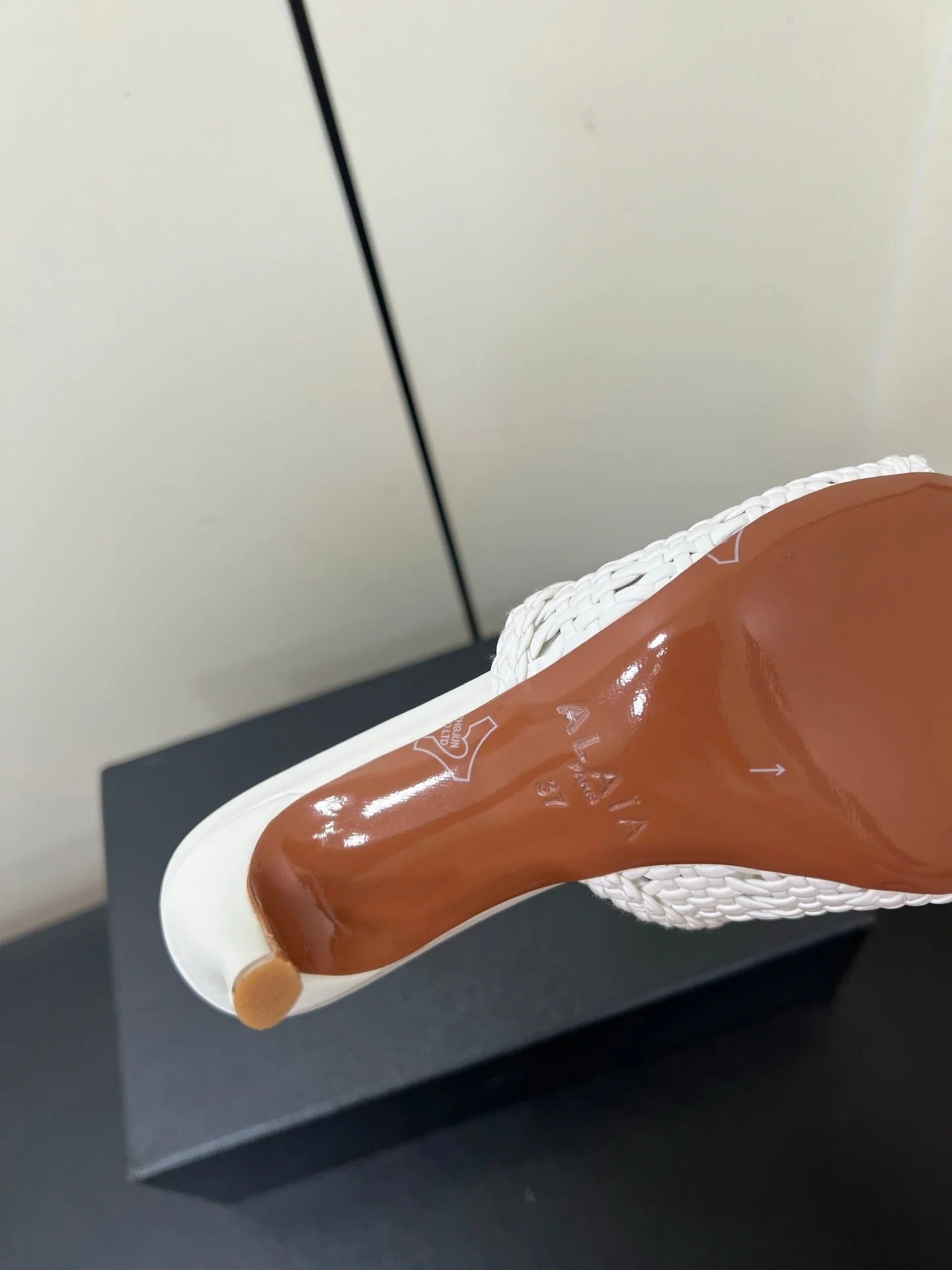 Alaia High Heel 25s 70 Mm In White Lambskin With Woven Pattern