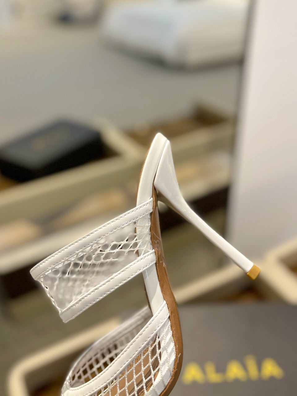 alaia mule 110 fishnet white heart lambskin