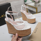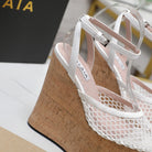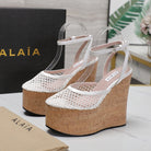 ALAIA WEDGE SANDAL IN WHITE MESH AND BEIGE RUBBER