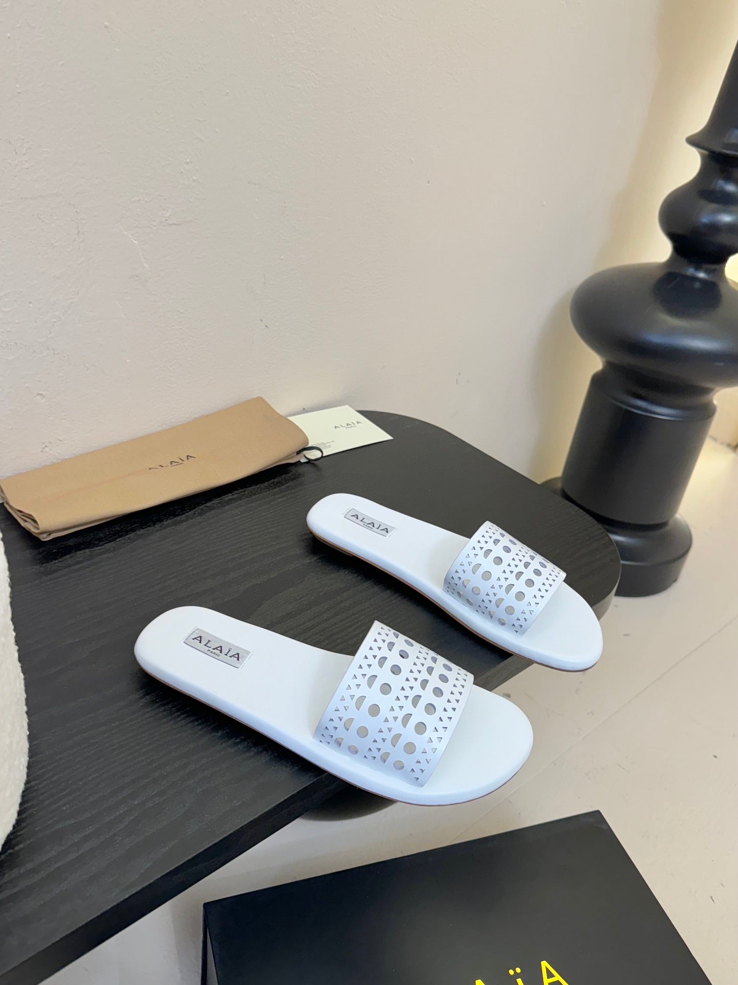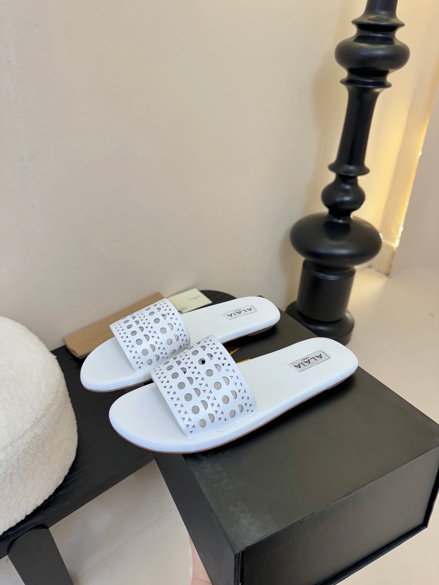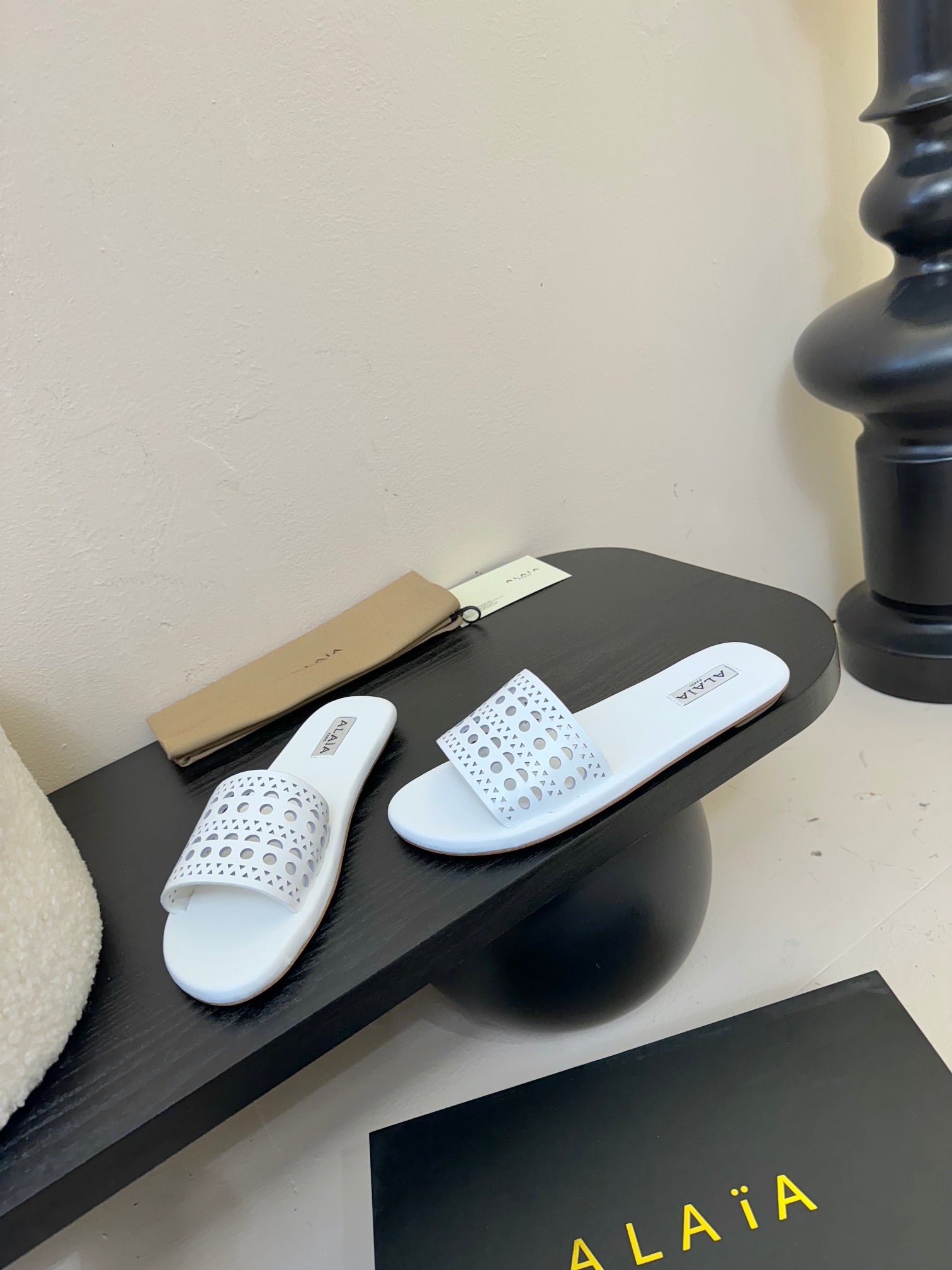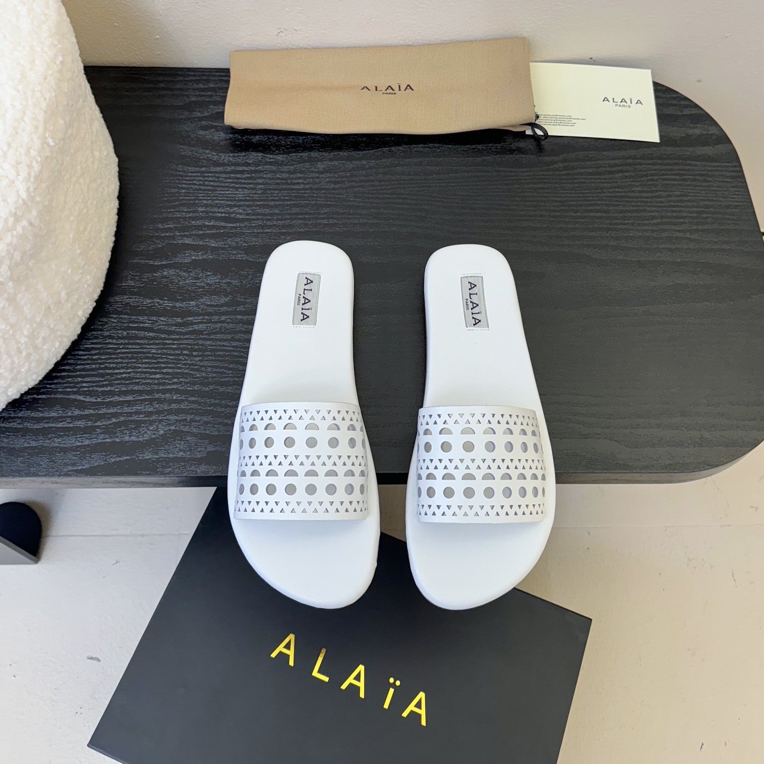 Alaia women laser-cut white leather slide 235540