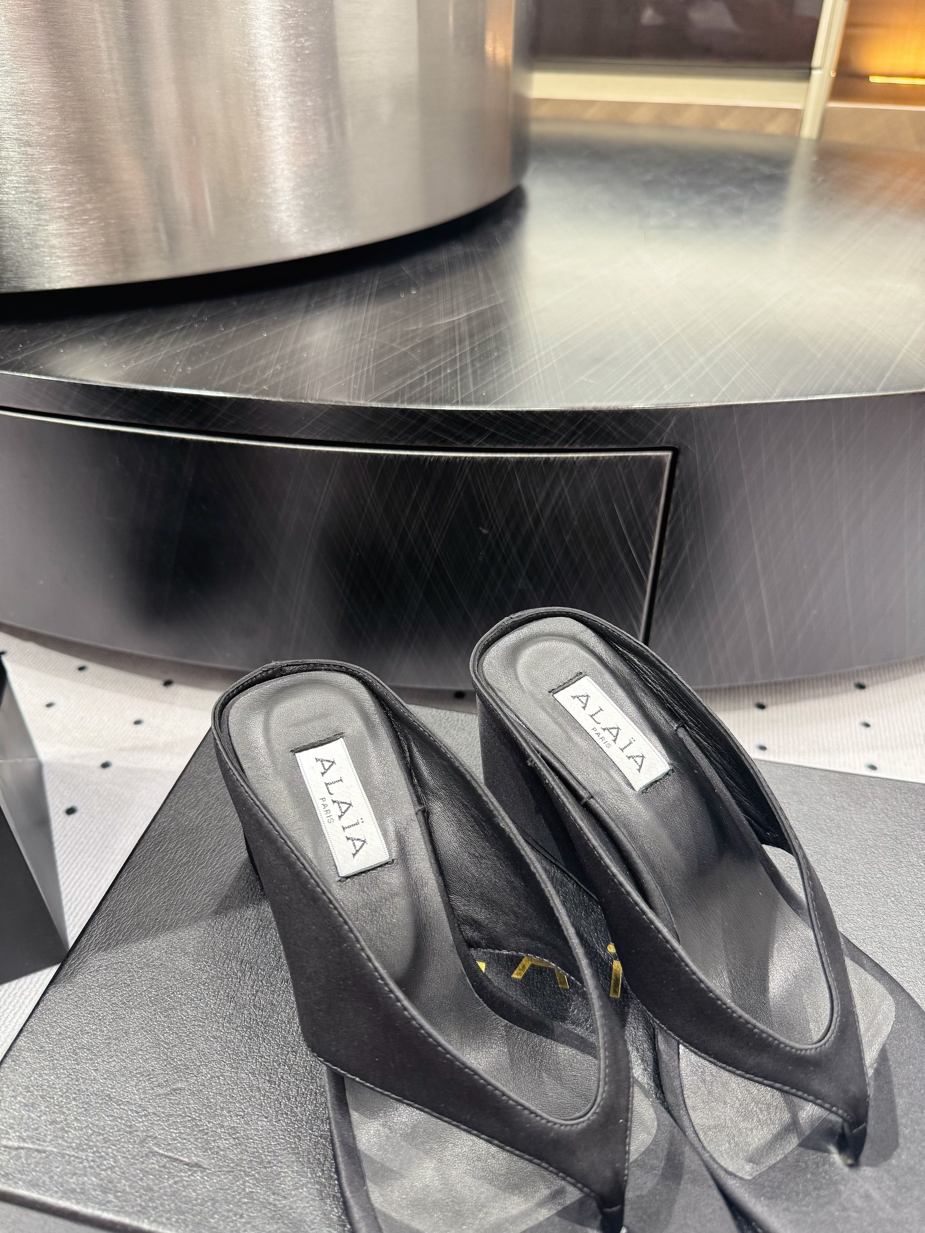 Alaia 25 Cube Thong Mules Black Sheepskin 296090