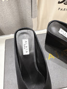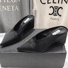 Alaia 25 Cube Wedge Mules Black Silk Sheepskin 300084