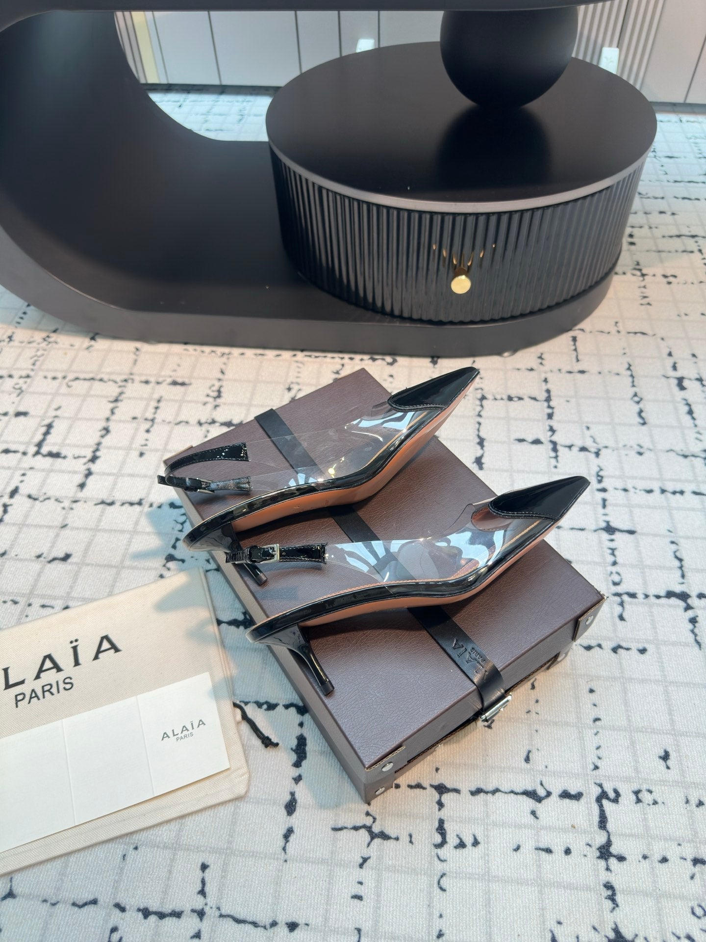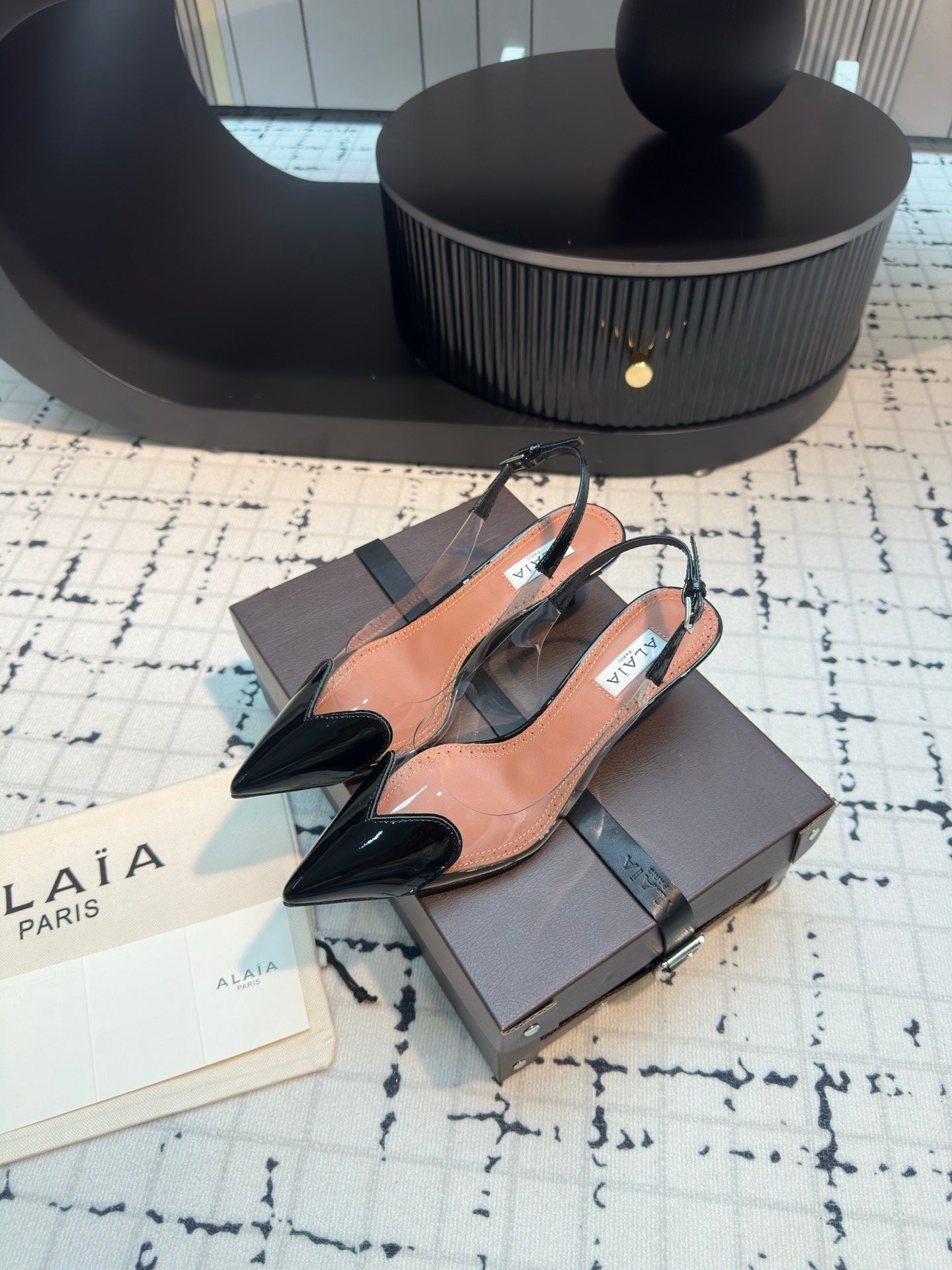 Alaia Heart 50mm Heels Slingbacks Black Sheepskin 810209