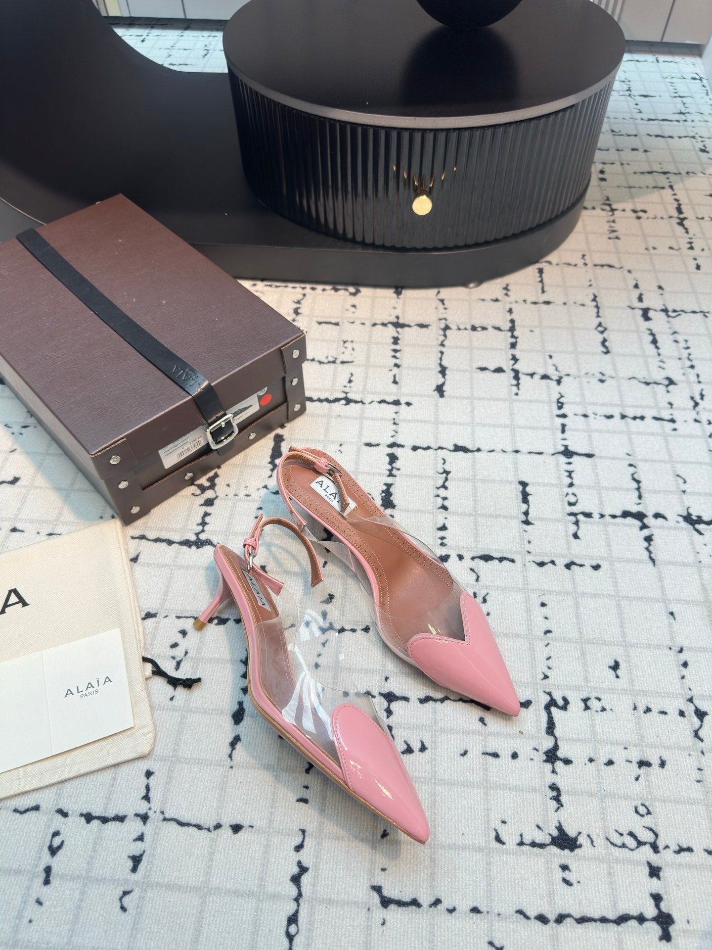 Alaia Heart 50mm Heels Slingbacks Pink Sheepskin 810201
