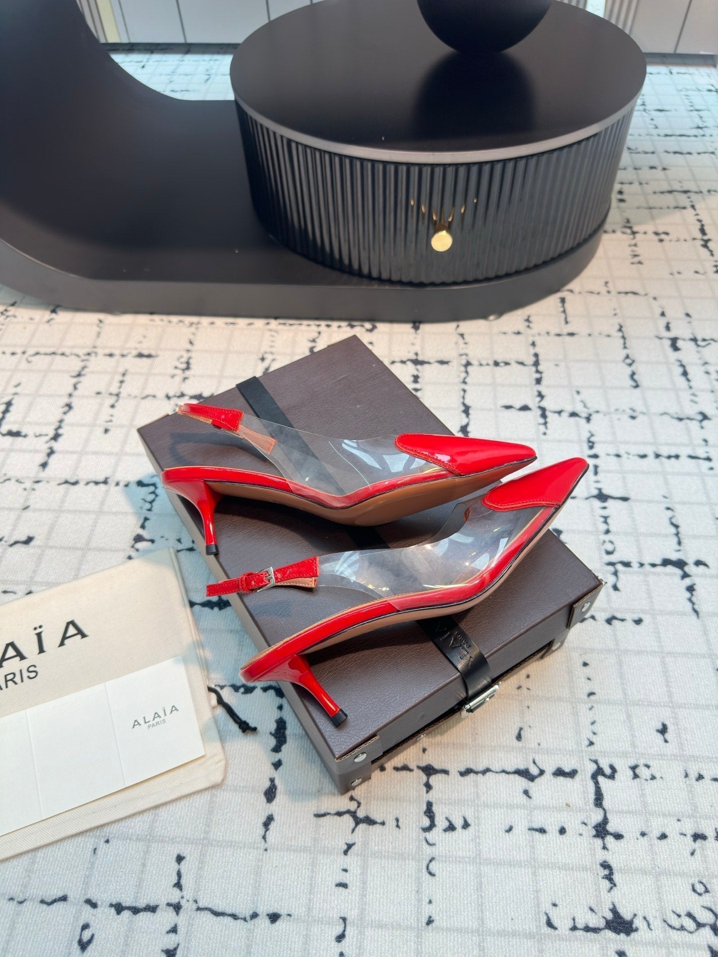 Alaia Heart 50mm Heels Slingbacks Red Sheepskin 810206