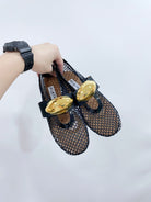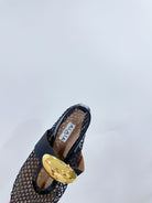 ALAIA MARY JANE SHOES IN BLACK MESH WITH GOLD HARDWARE