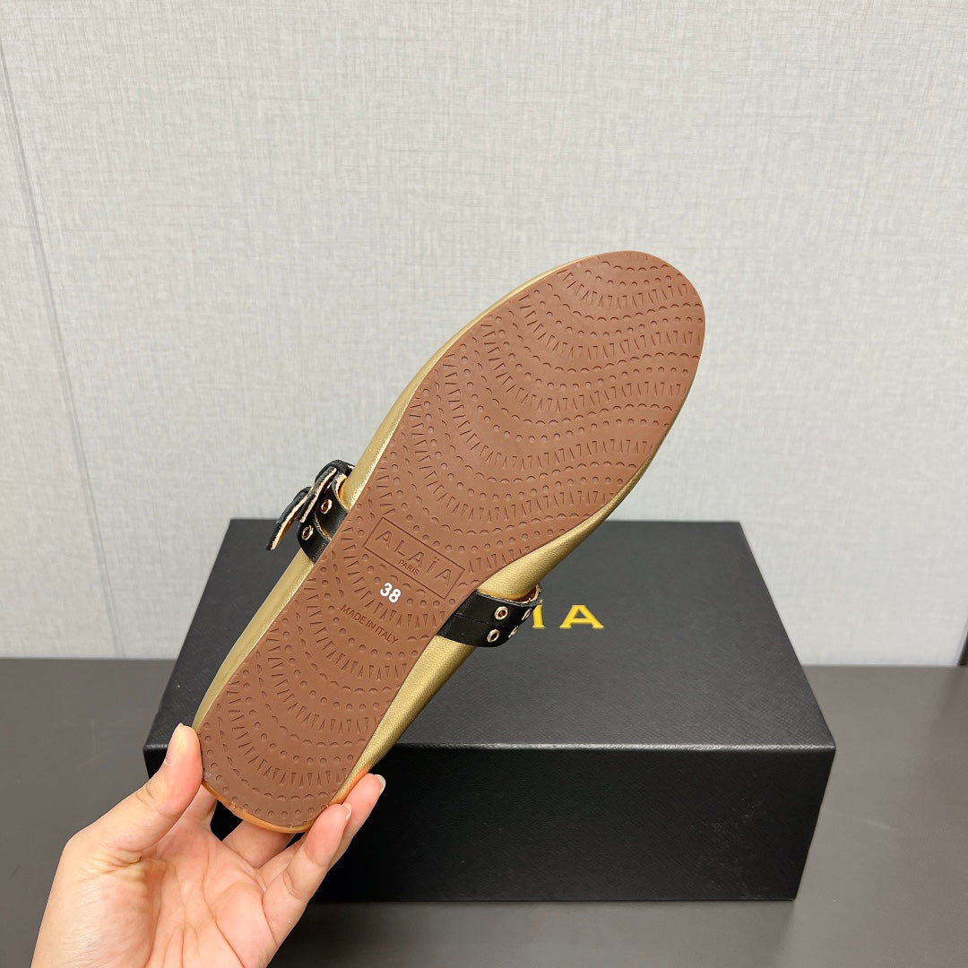 ALAIA MARY JANE SHOES IN GOLDEN LAMBSKIN SILVER HARDWARE