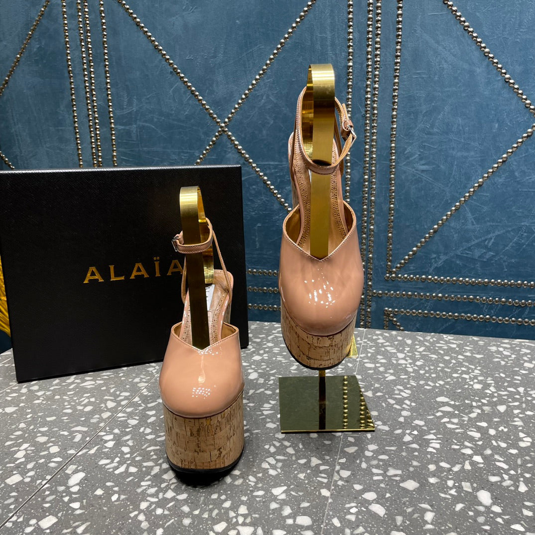 ALAIA WEDGE PUMP 15 CM IN ALMOND BEIGE LAMBSKIN AND BEIGE RUBBER
