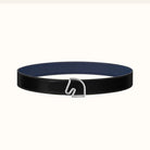 BOUCLE BELT BUCKLE & REVERSIBLE NAVY BLUE AND BLACK AND WHITE LEATHER STRAP 38MM SILVER HARDWARE