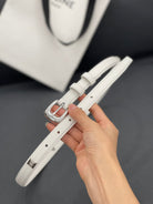 CL SMALL 18 MM TRIOMPHE BELT IN TAURILLON WHITE LEATHER SILVER HARDWARE