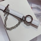 H SILVER BUCKLE WOMEN'S BELT WHITE RED LEATHER STRAP 1.3CM