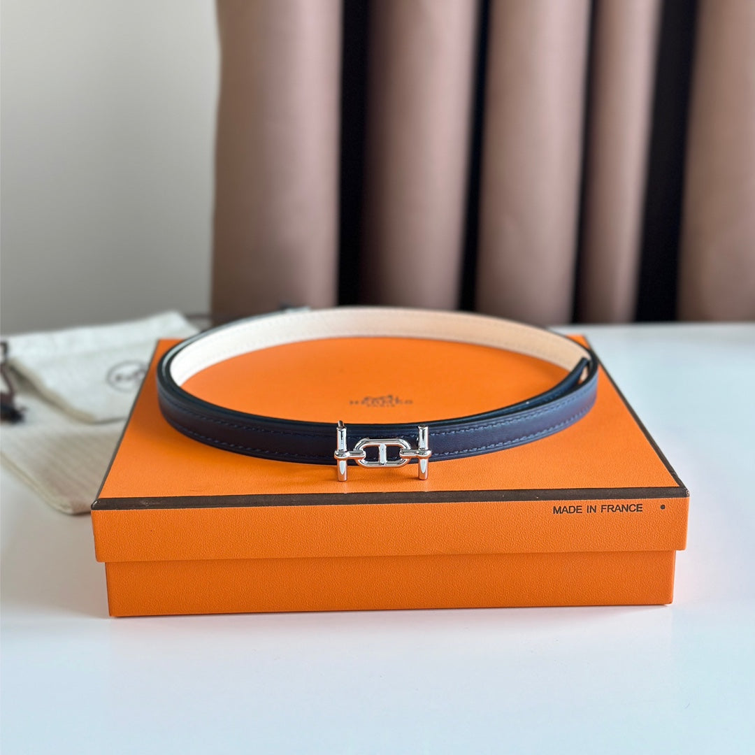 HM ANCRE BUCKLE & REVERSIBLE WHITE AND NAVY BLUE LEATHER STRAP 13MM SILVER HARDWARE