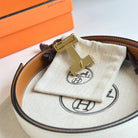 HM Gold Constance & Reverible Belt Brown White Leather 125376