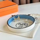 HM Gold Mors H buckle & Reversible 24 mm belt Blue White leather 125359