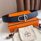 HM ITHAQUE BELT SILVER BUCKLE & REVERSIBLE NAVY BLUE AND BLACK LEATHER STRAP 38MM