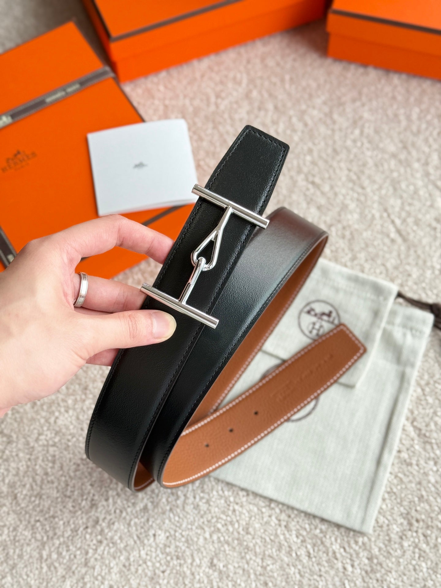 HM Jumbo Buckle Belt 38mm Brown Black Leather 187559