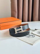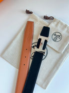 HM Silver H Buckle & Reversible 32mm Belt Brown mix Black leather 124655