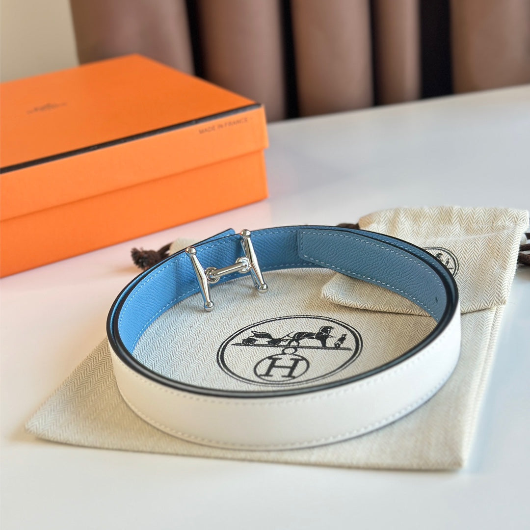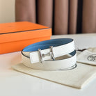 HM Silver Mors H buckle & Reversible 24 mm belt Blue White leather 125360