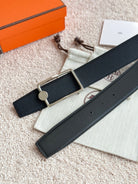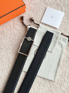 HM Silver Oscar Buckle Belt 38mm Black Leather 187784