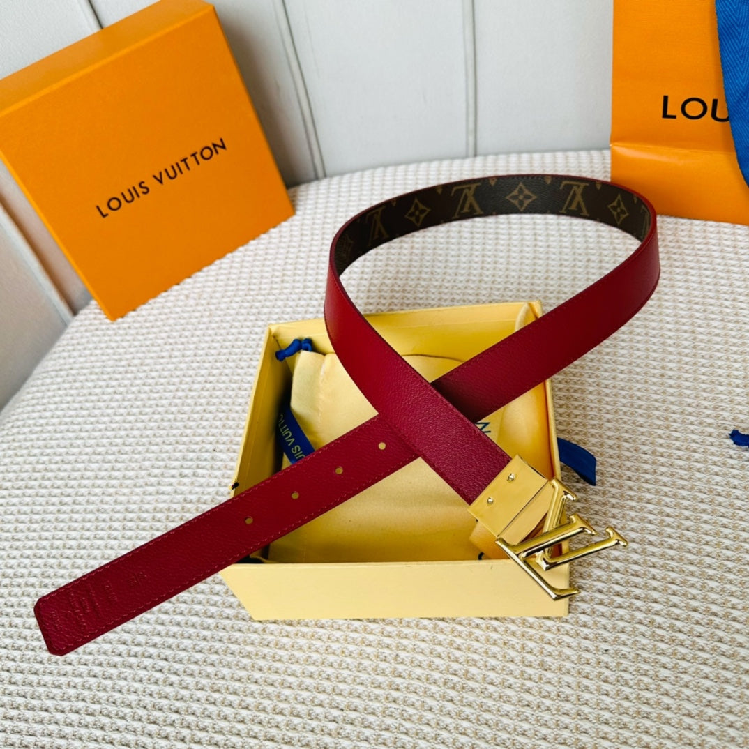 LV Initiales 30mm Reversible Belt Gold Rotating Buckle Burgundy Brown Leather