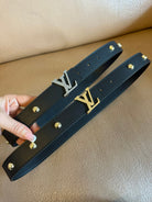 LV Initiales Studs 30mm Reversible Belt Gold Buckle Black Leather