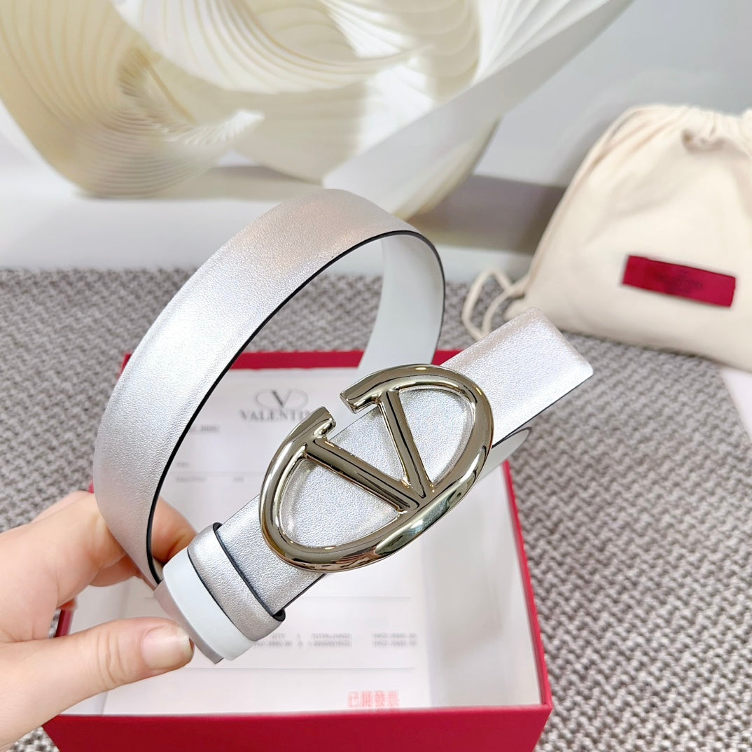 The Bold Edition Reversible Belt 30mm Silver Metalic White Calfskin Silver Buckle